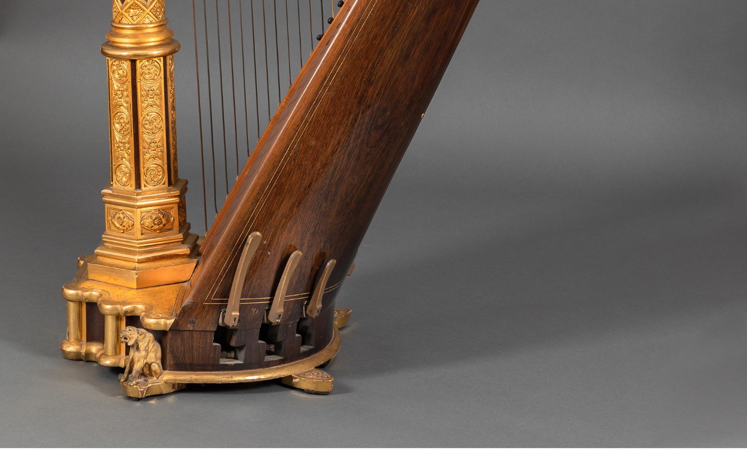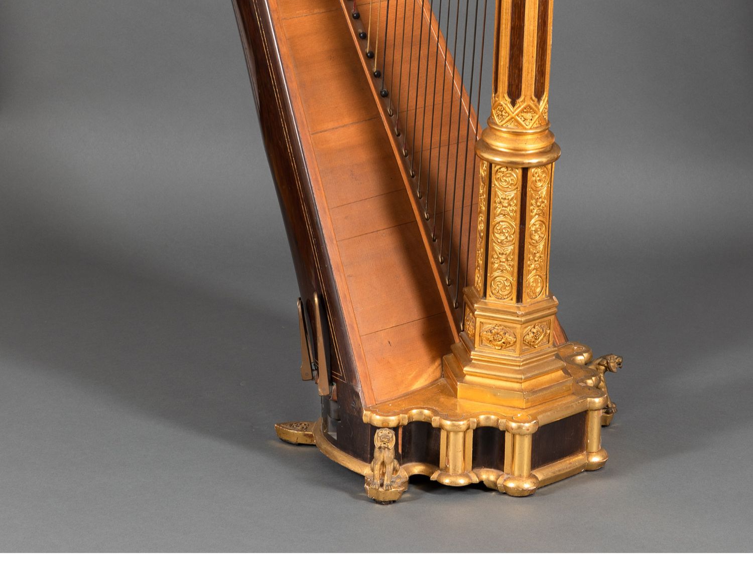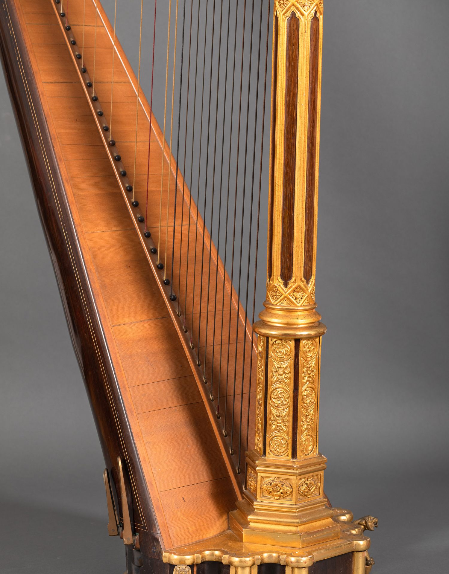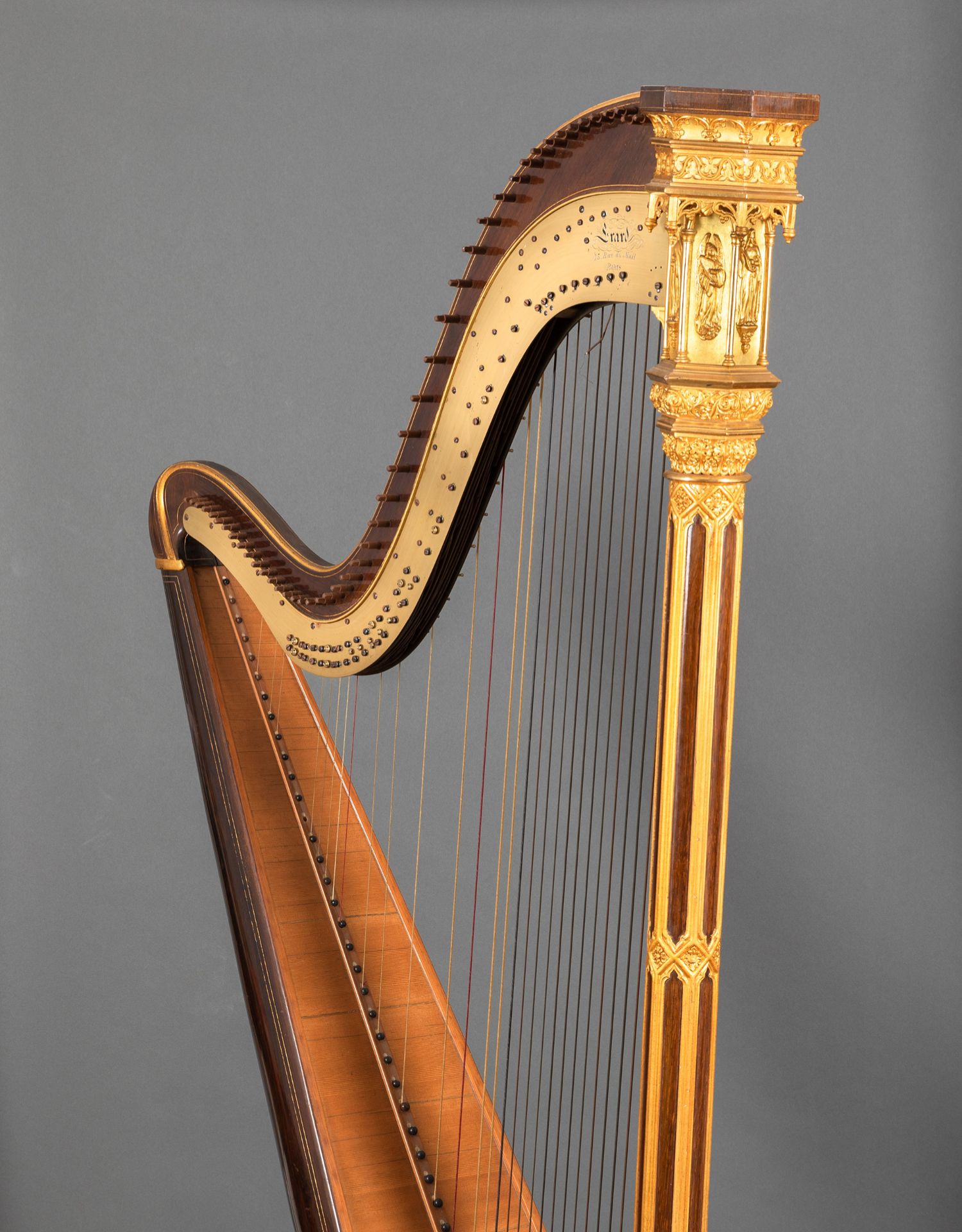 独角鹿西洋古董法国乐器工坊Érard签名哥特风格鎏金47弦枫木竖琴