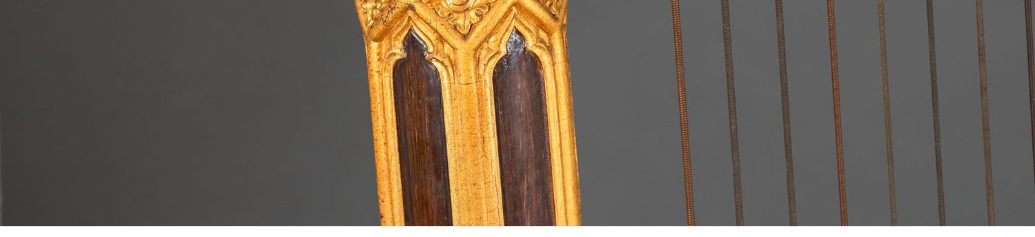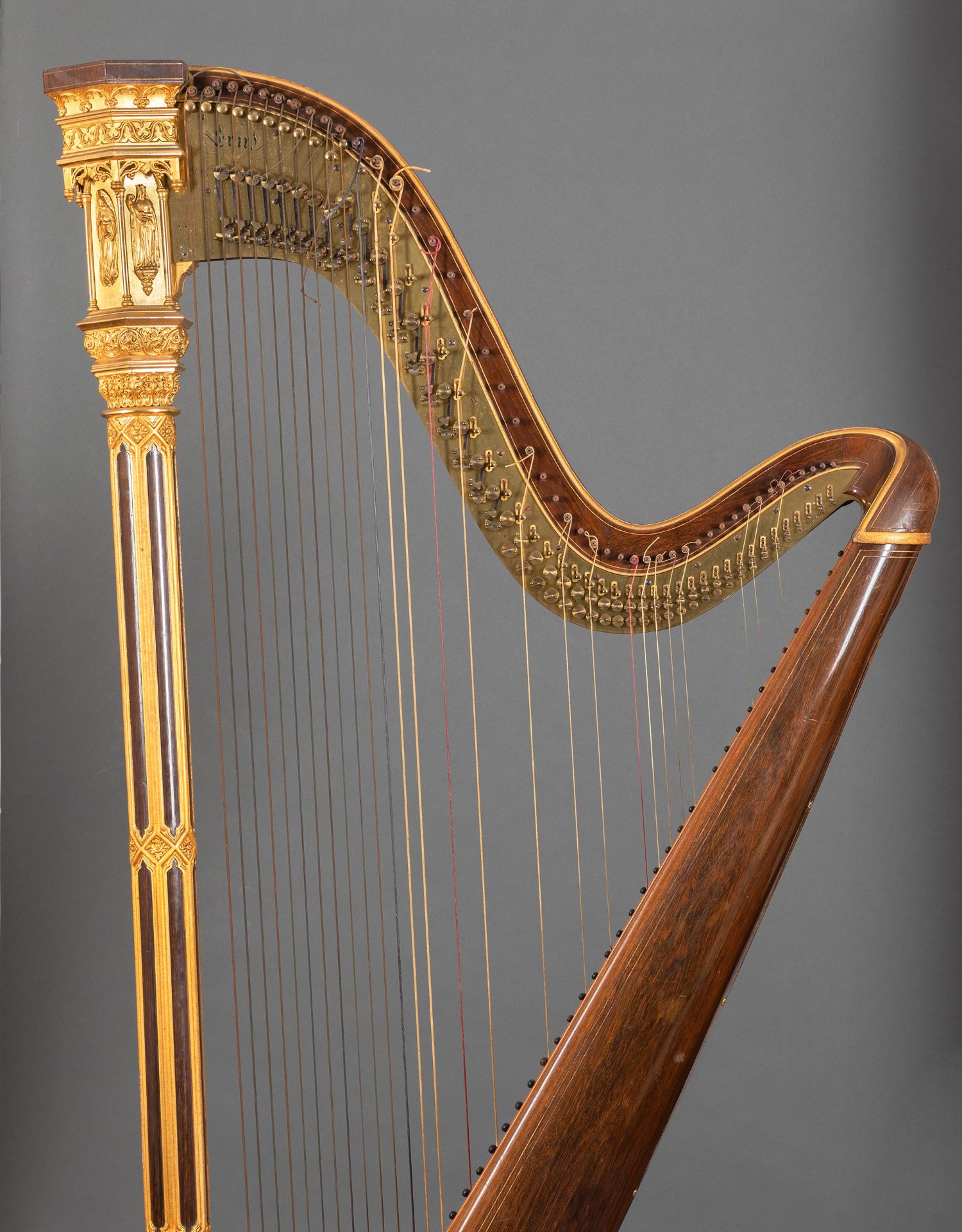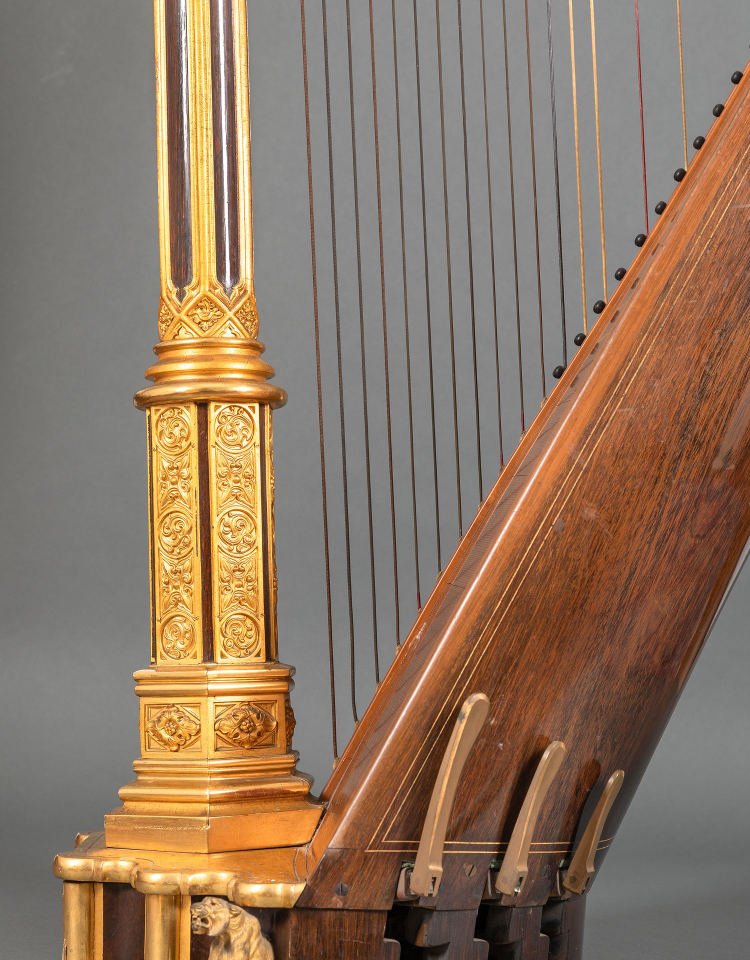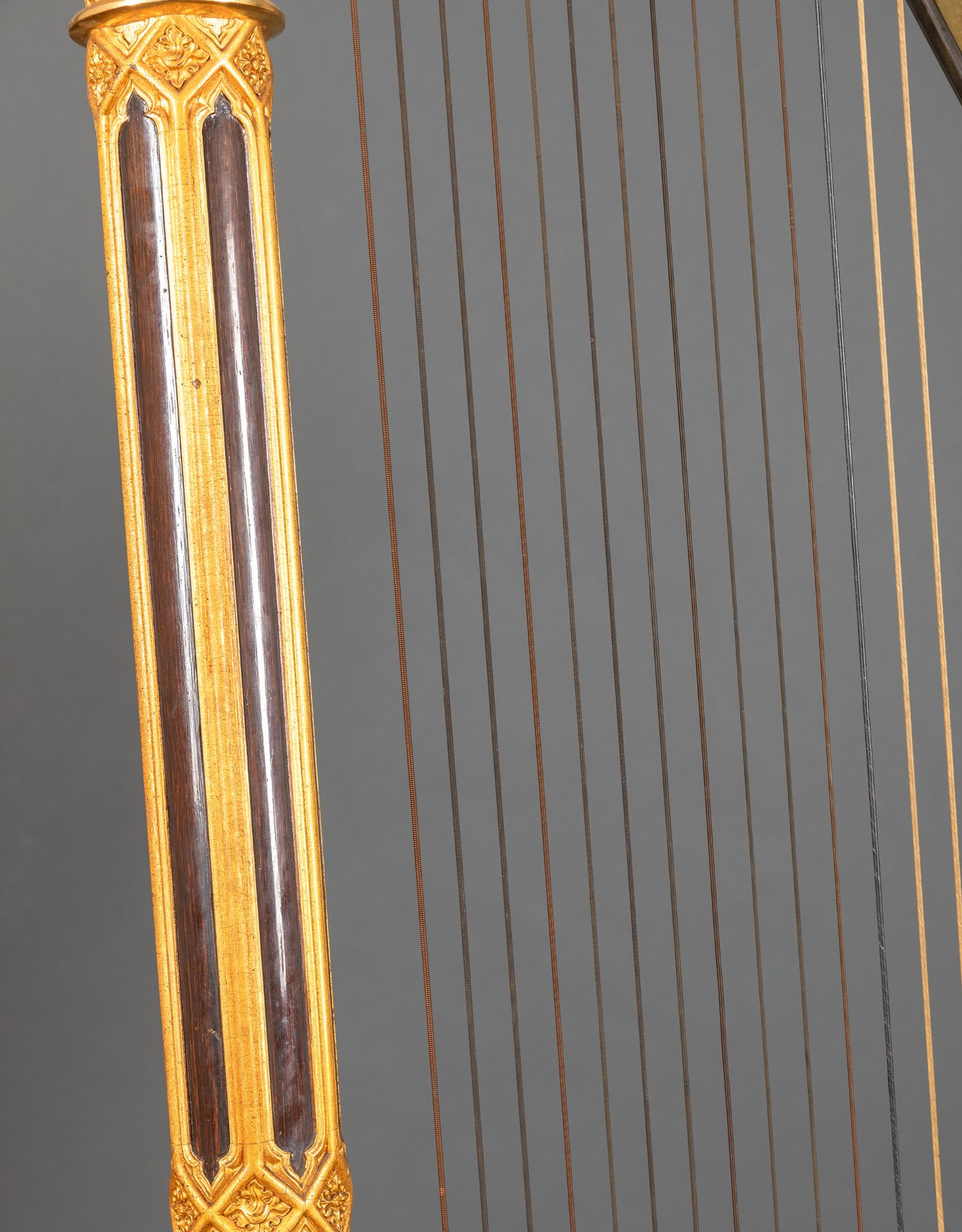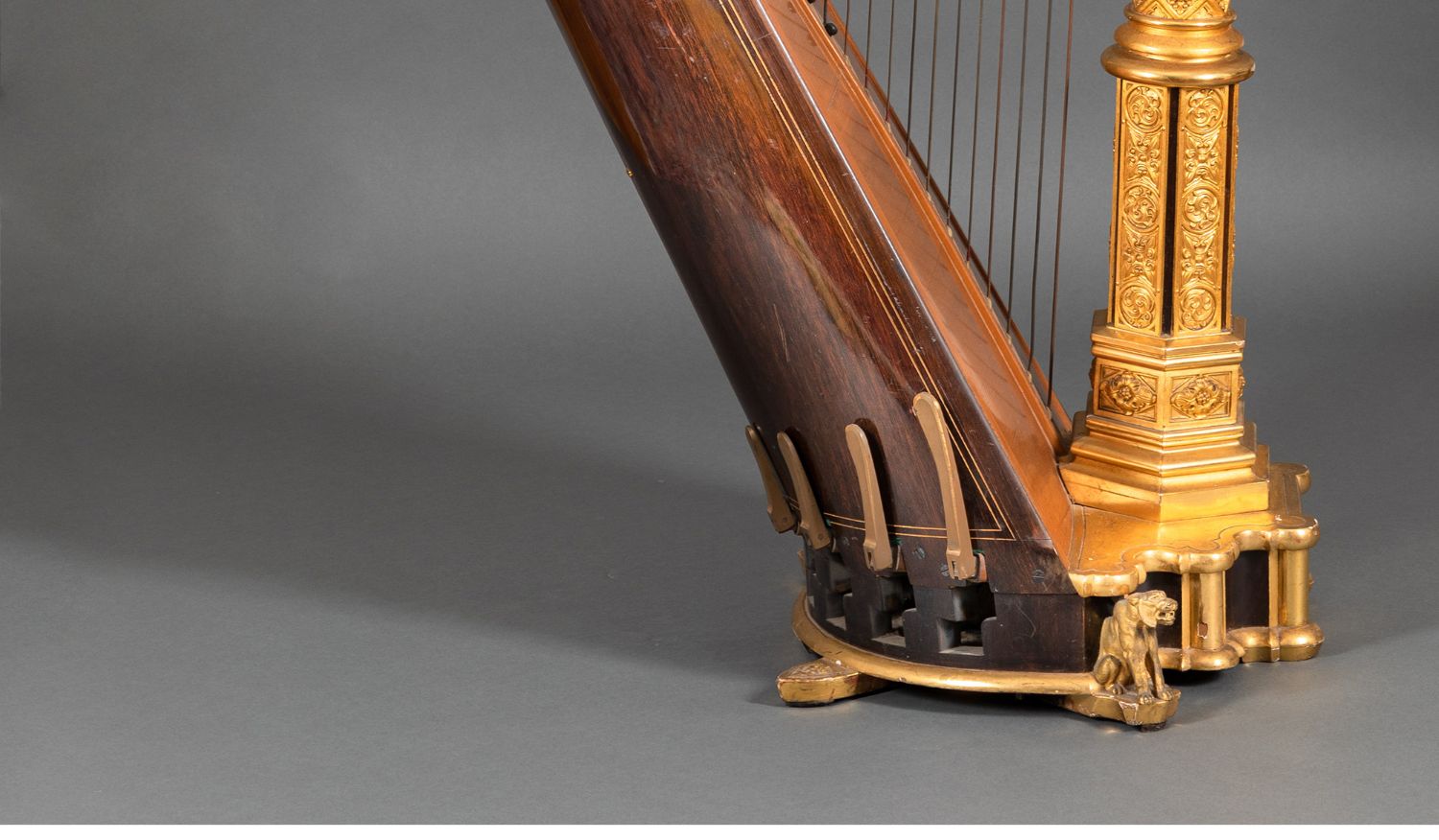 独角鹿西洋古董法国乐器工坊Érard签名哥特风格鎏金47弦枫木竖琴