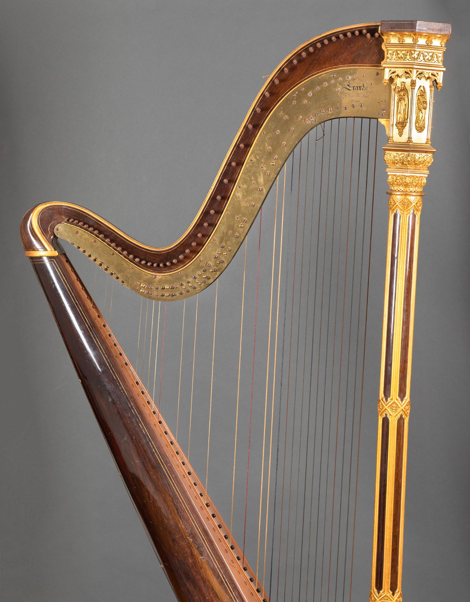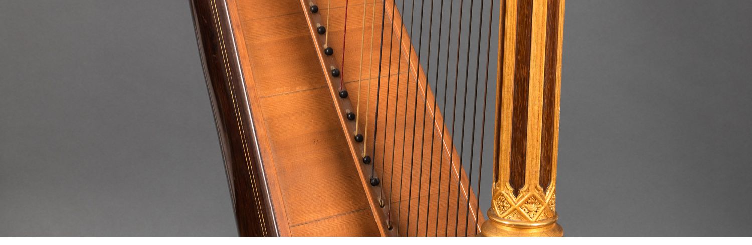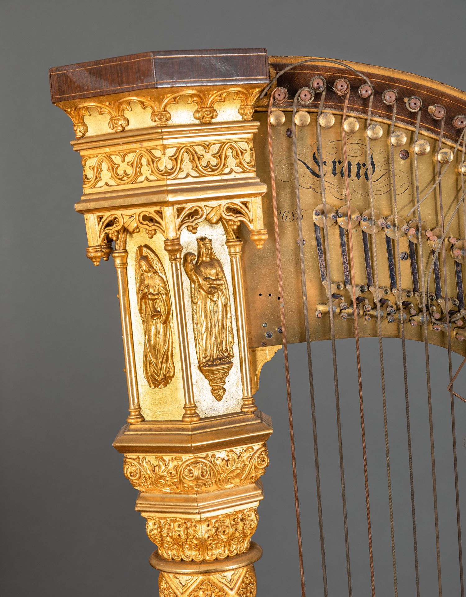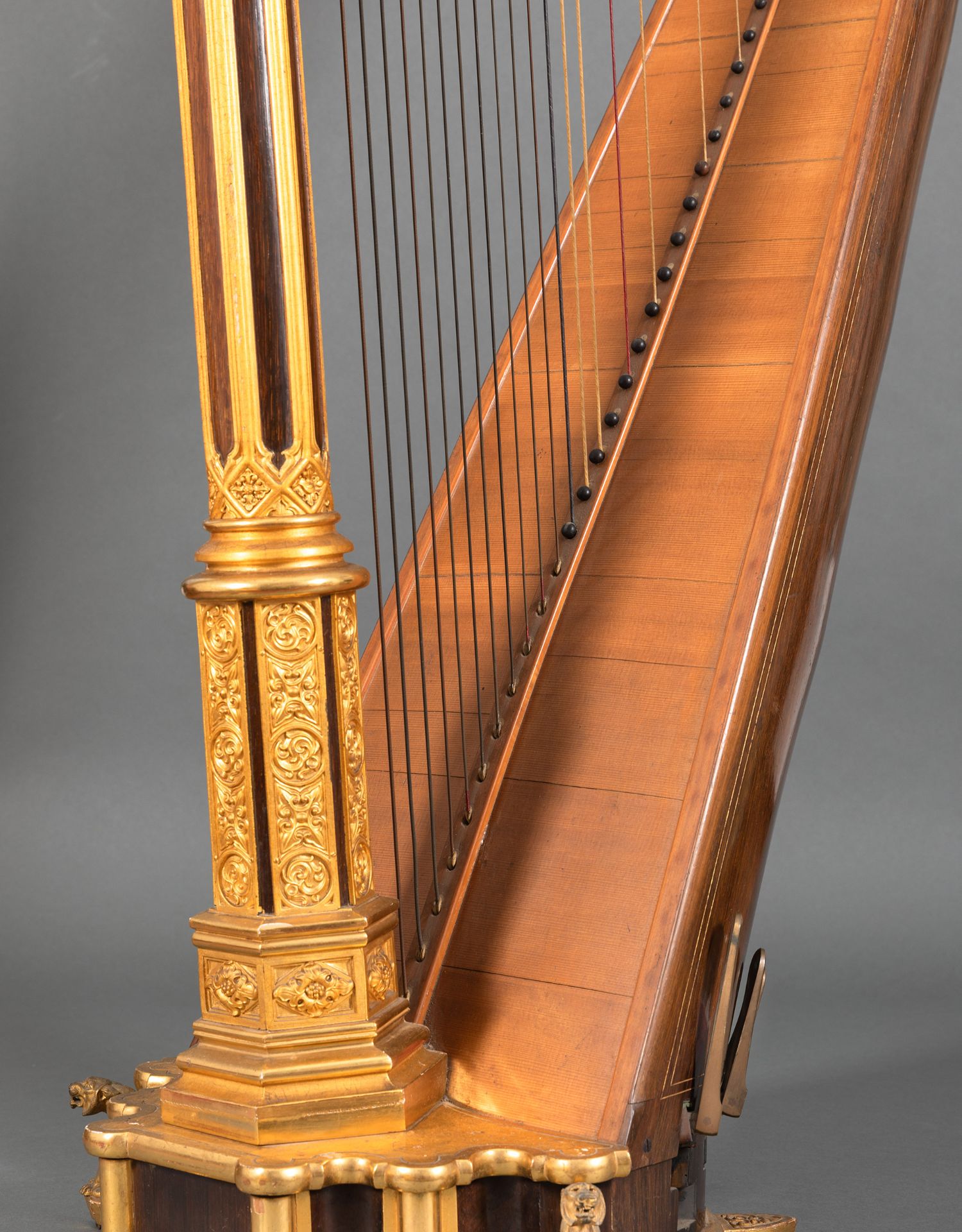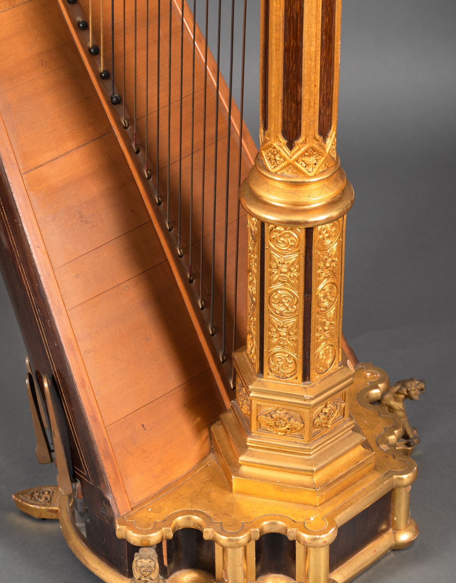 独角鹿西洋古董法国乐器工坊Érard签名哥特风格鎏金47弦枫木竖琴