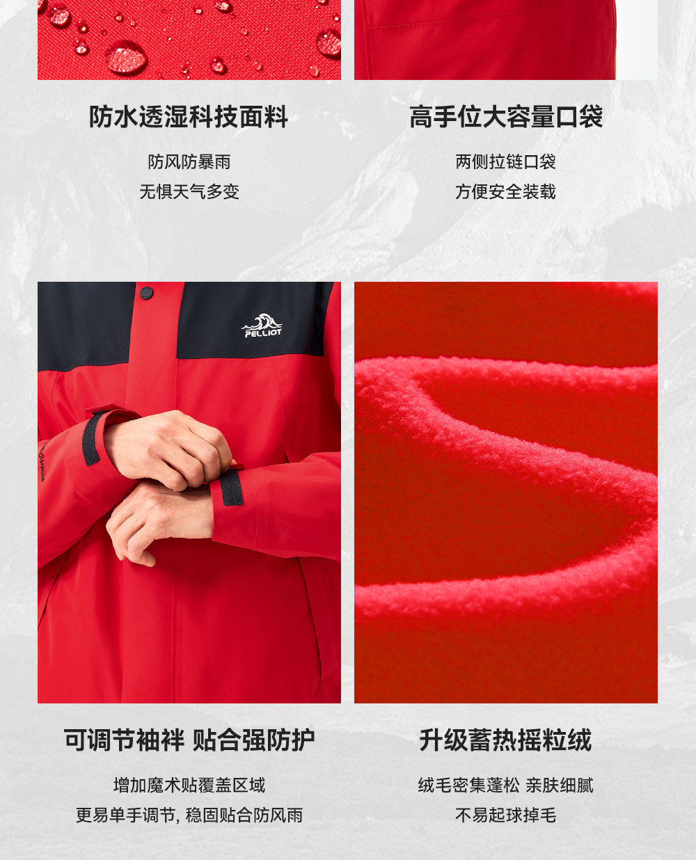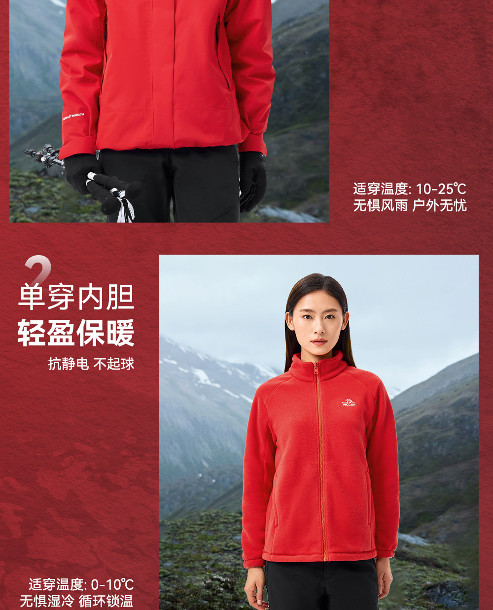 【马年限定】伯希和原石三合一冲锋衣新年款防风保暖内胆登山外套