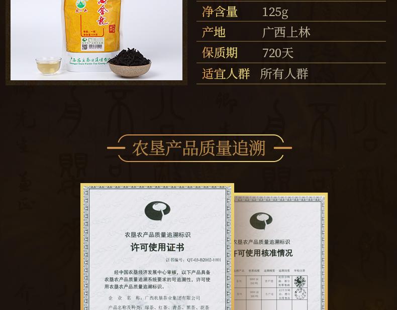 大明山 广西农垦茶叶 产品质量可追溯 黄金龙 浓香型一级乌龙茶 125g/袋