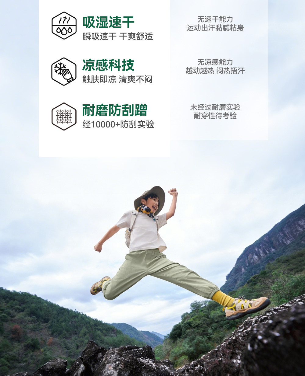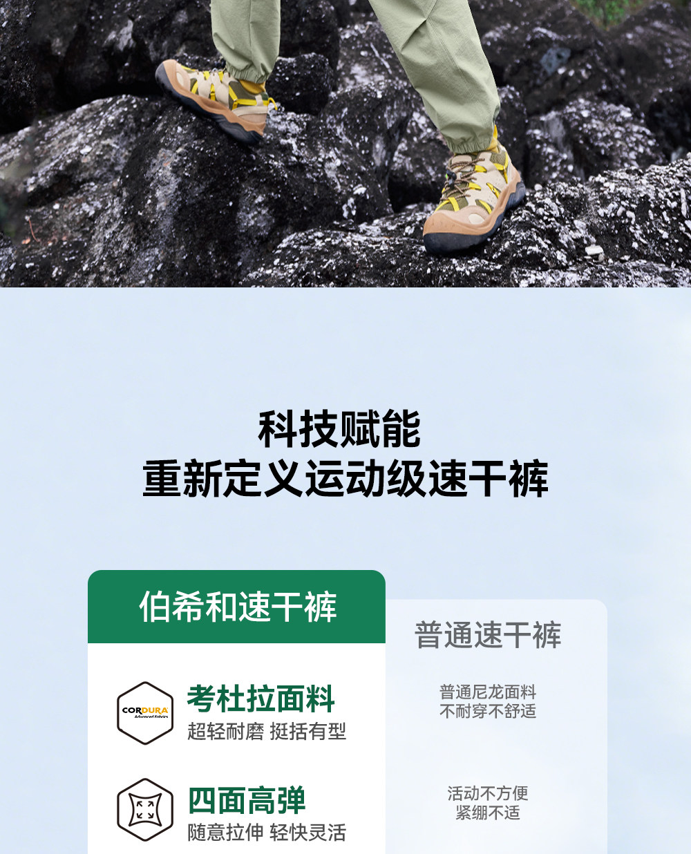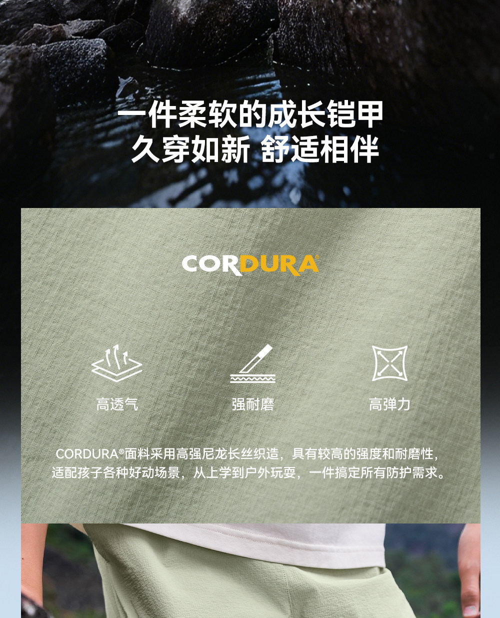 伯希和户外速干裤儿童春季新款CORDURA耐磨弹力伞兵裤凉感登山裤