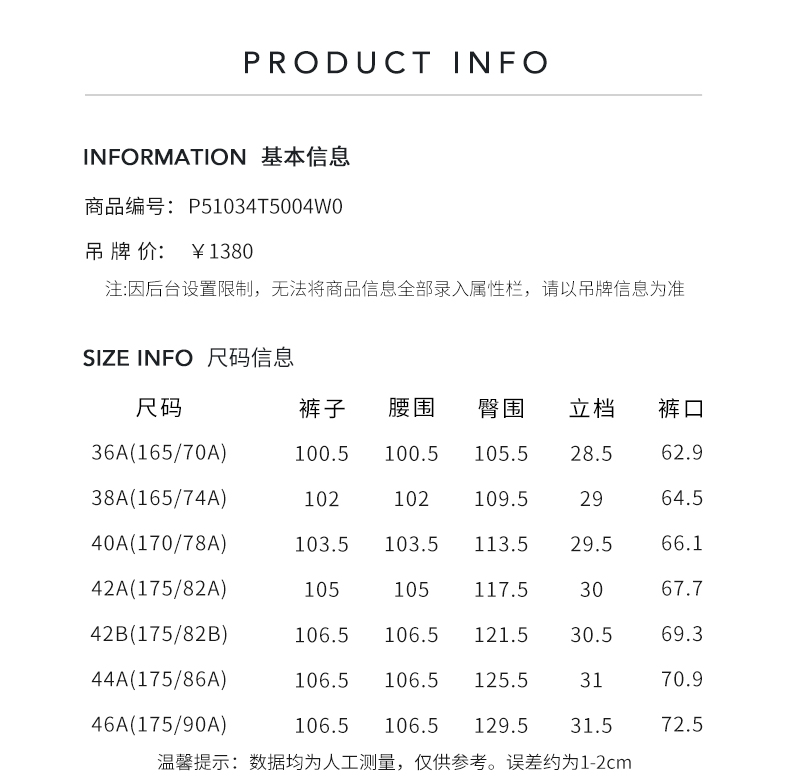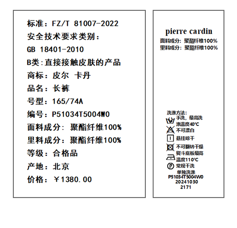 皮尔卡丹女装裤子P51034T5004W0