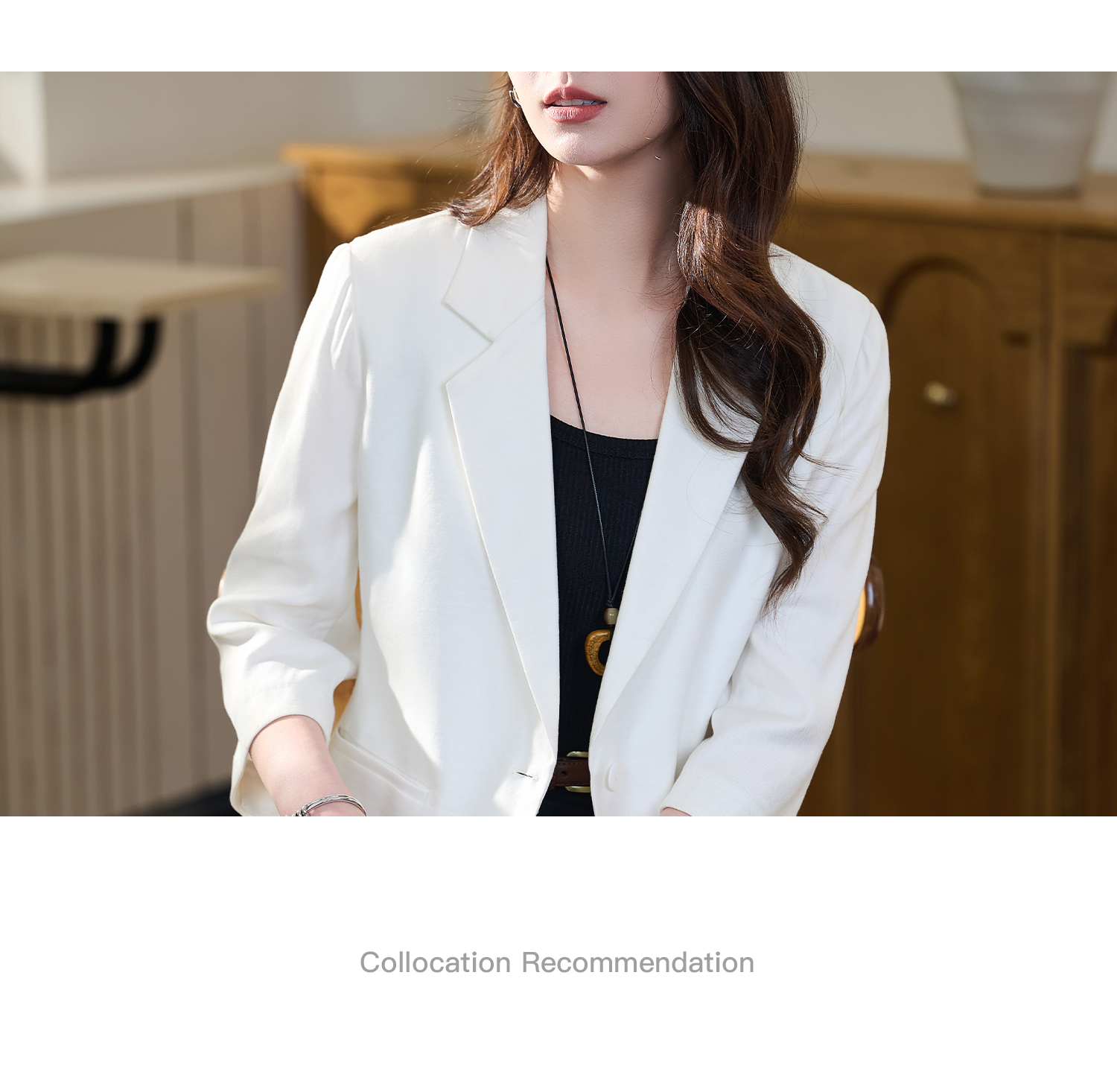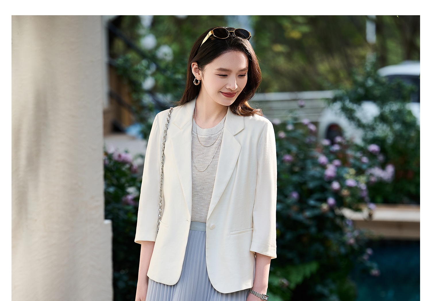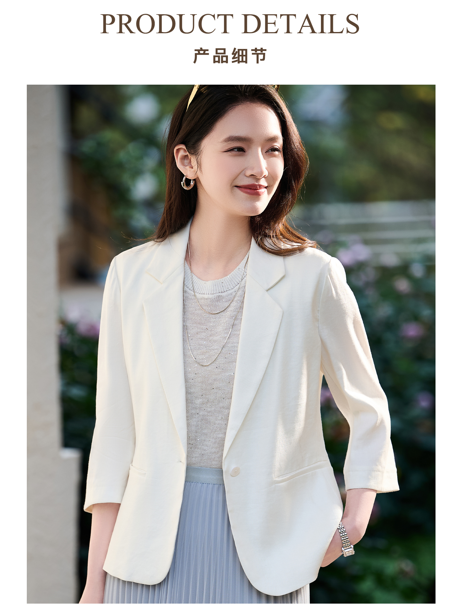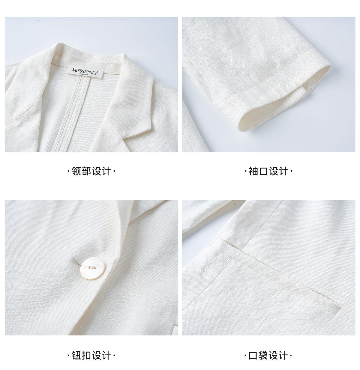 舒适亚麻 米思阳2026春新款轻职风优雅通勤OL修身小西装七分袖西装外套女6131