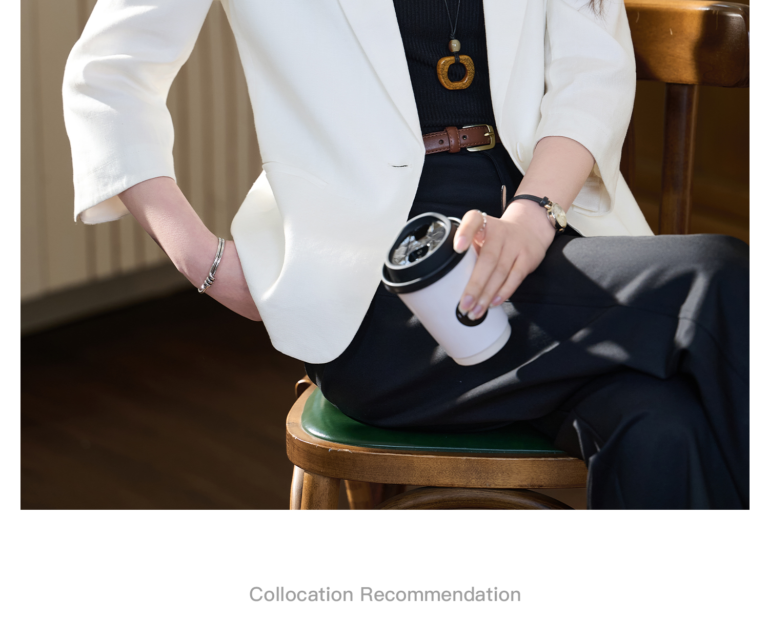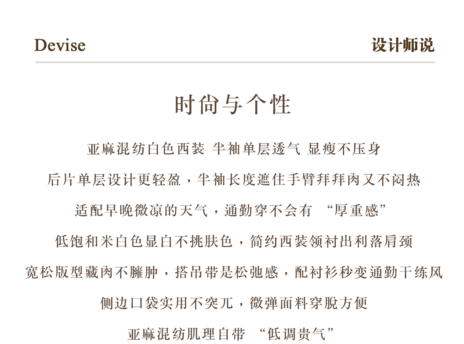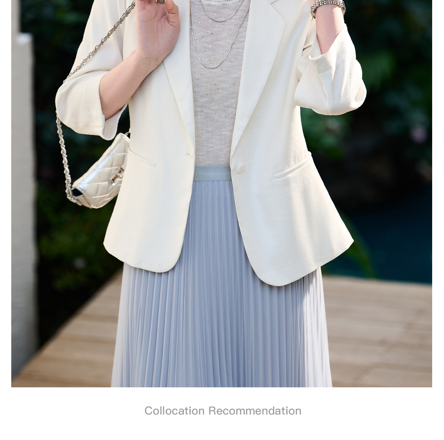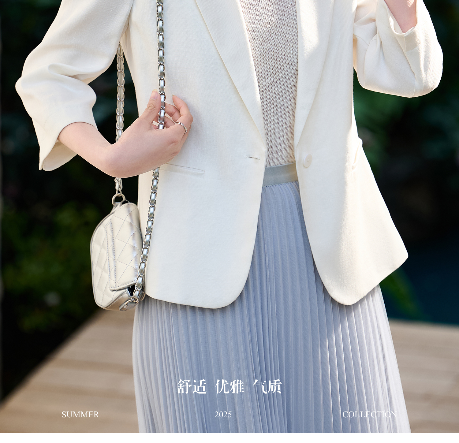 舒适亚麻 米思阳2026春新款轻职风优雅通勤OL修身小西装七分袖西装外套女6131