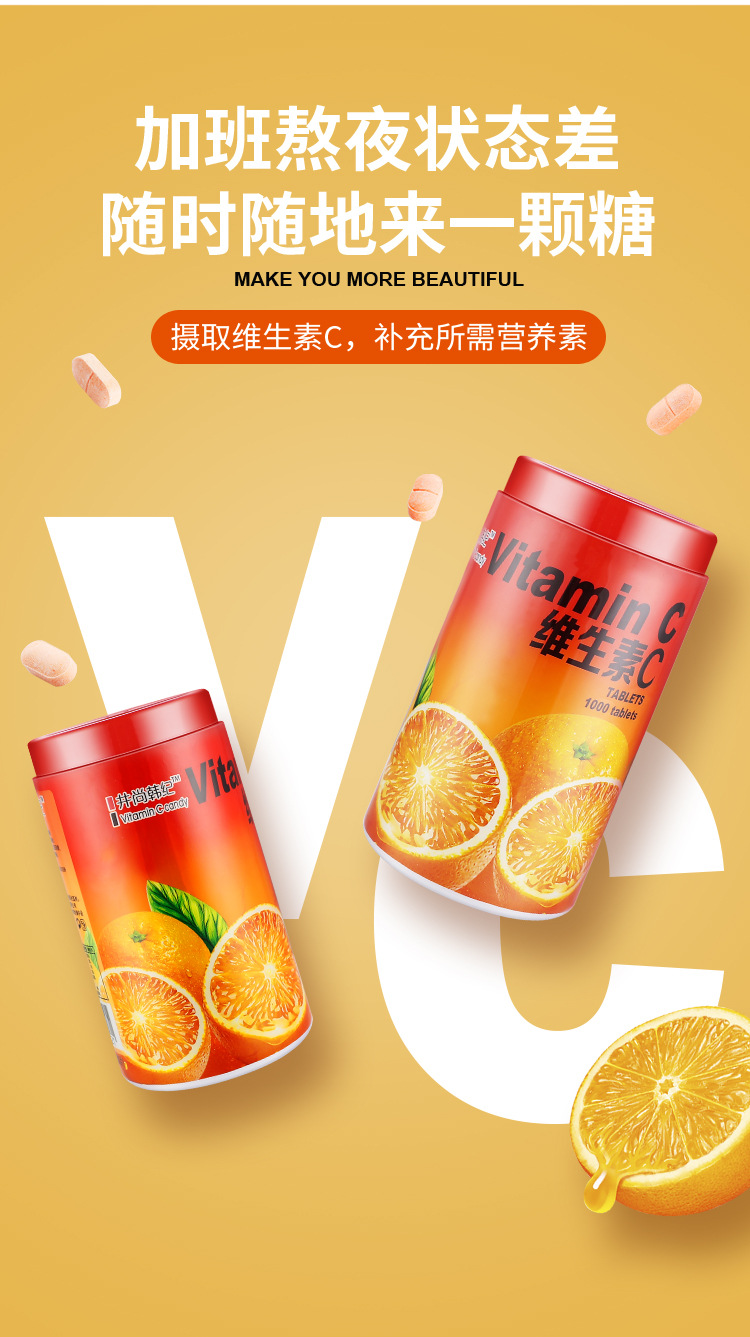 【29.9抢1000粒❗ 维生素C 】摄取维生素C,补VC能量,酸酸甜甜,口感好易吸收,香橙味压片咀嚼片含片VC糖果QQ