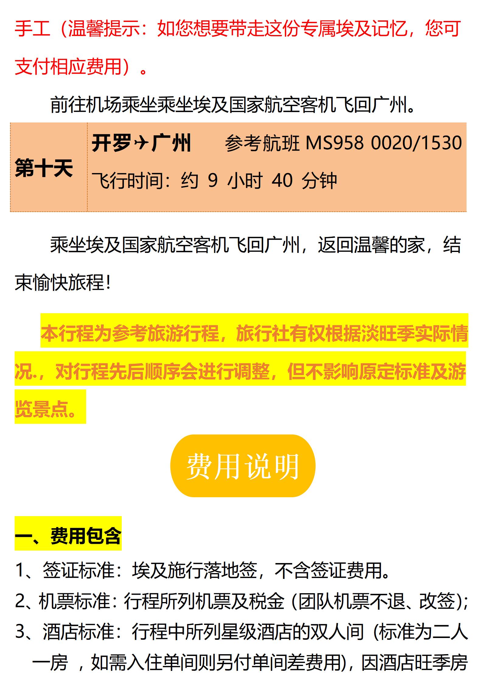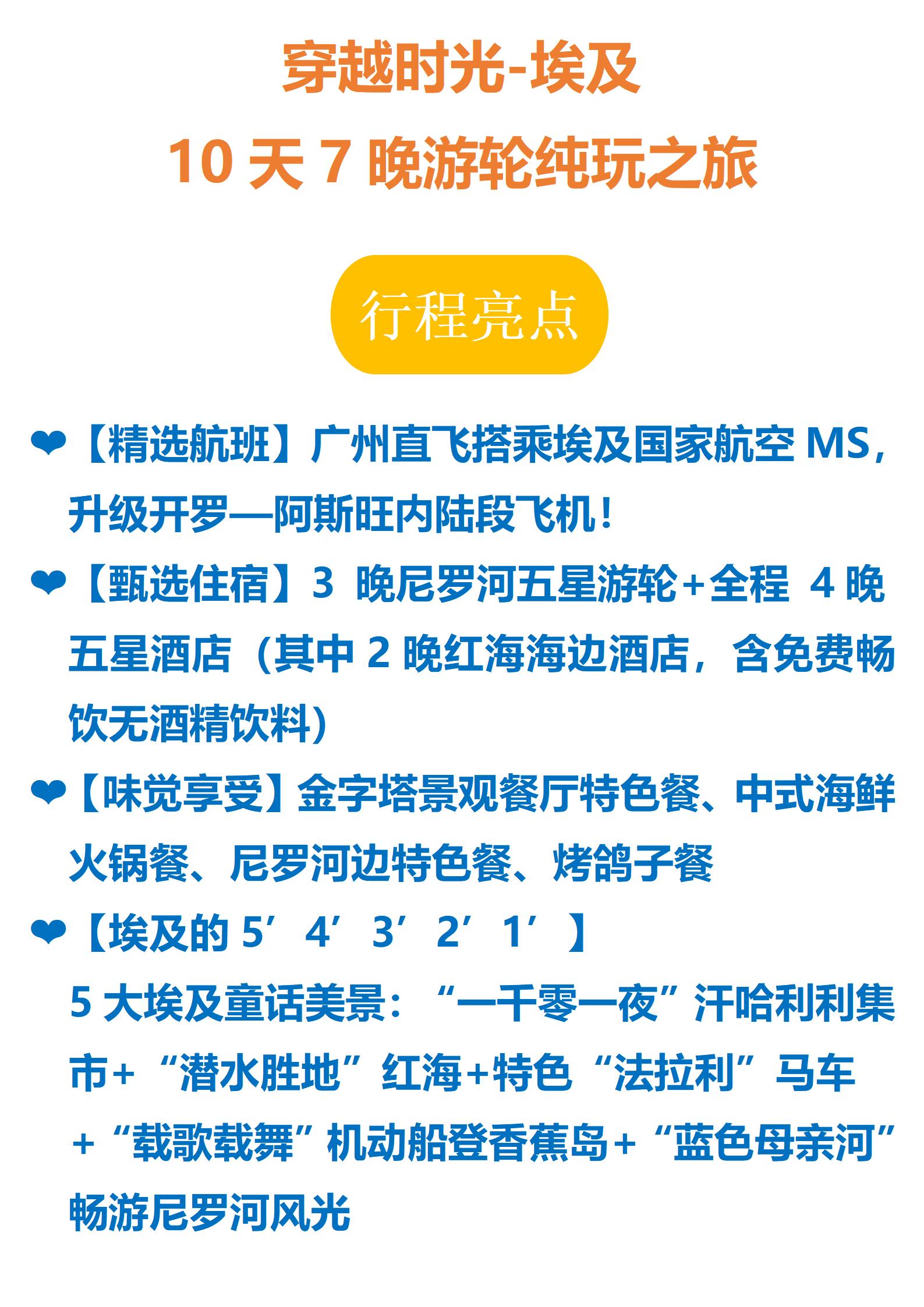 【国庆】埃及游轮10 天 7 晚纯玩之旅(广州往返)