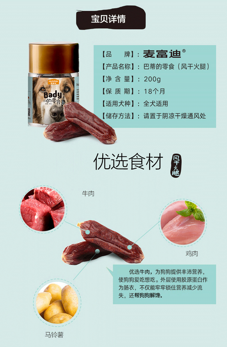麦富迪零食犬用火腿肠风干宠物火腿香肠小磨牙棒泰迪零食