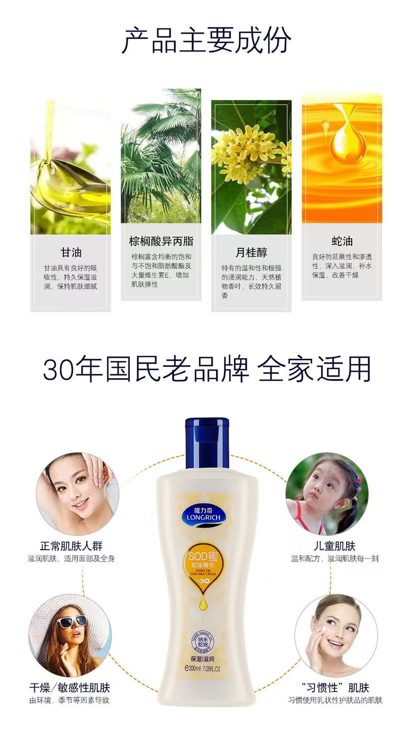 隆力奇200ML蛇油sod蜜护肤面霜补水脸部保湿滋润乳液秋冬男女通用
