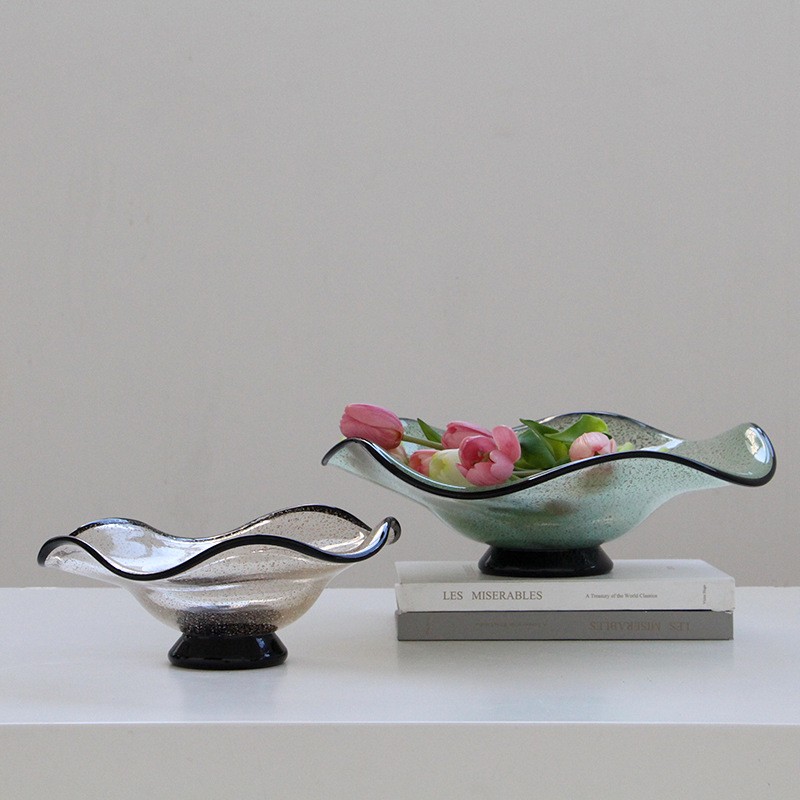 现代轻奢样板间桌面透明黑边鎏金果盘家居软装饰品装饰收纳玻璃盘