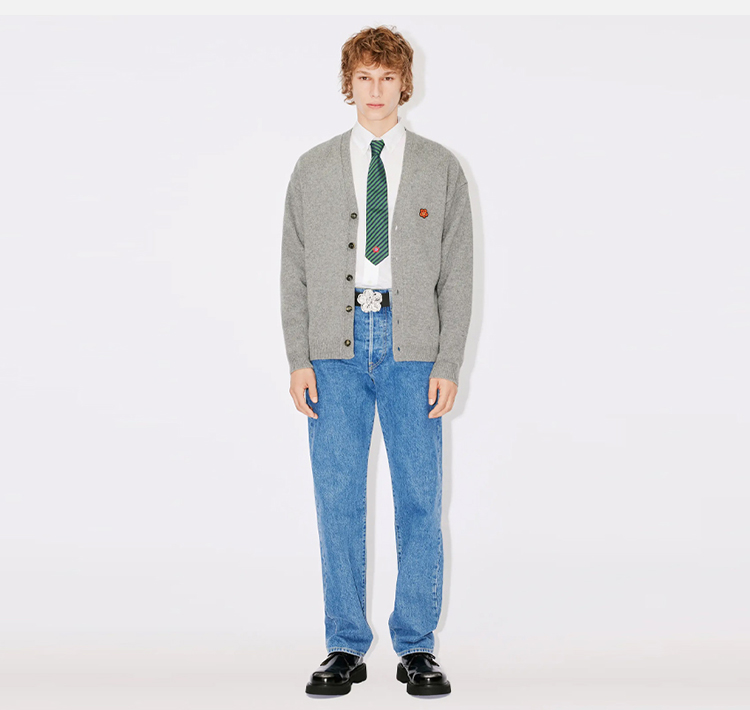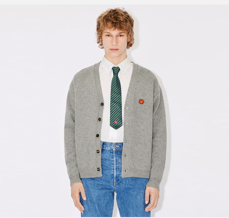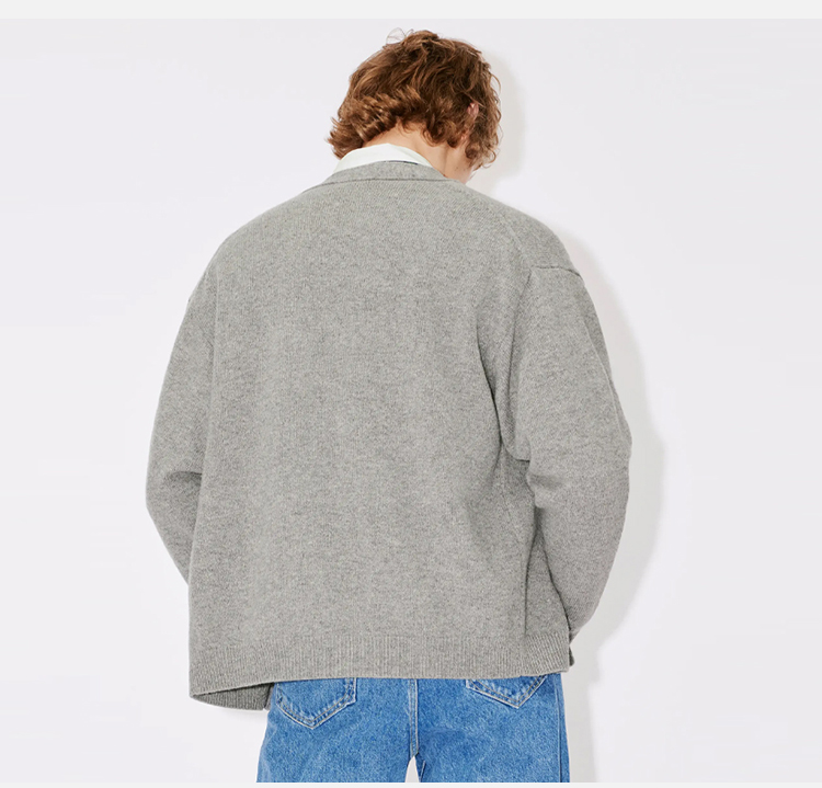KENZO 高田贤三 男士刺绣徽标羊毛针织开衫 灰色 FD65 CA418 3LC 94