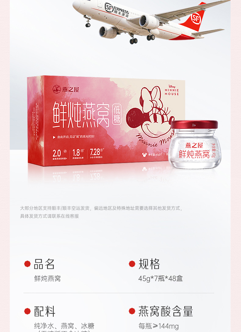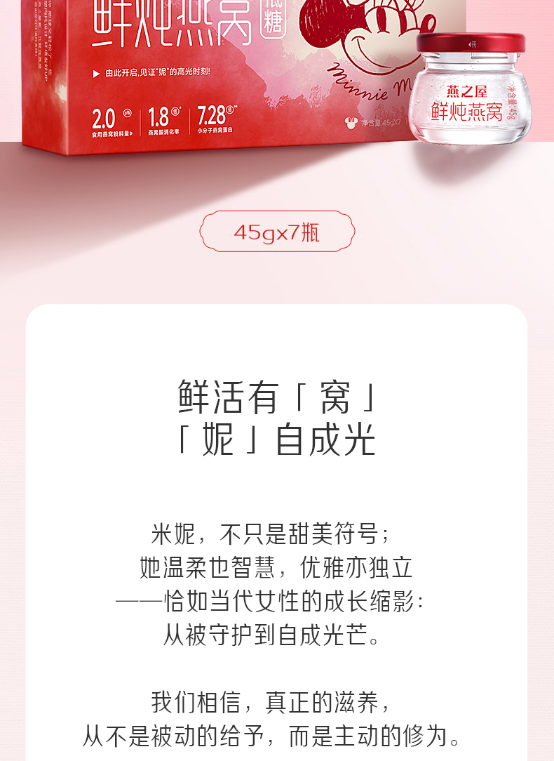 【燕窝补贴 老客私享宴】燕之屋新一代鲜炖燕窝 迪士尼米妮限定款 钻石45g*56瓶 常温配送养生滋补营养【认准旗舰店】【每周发7瓶】