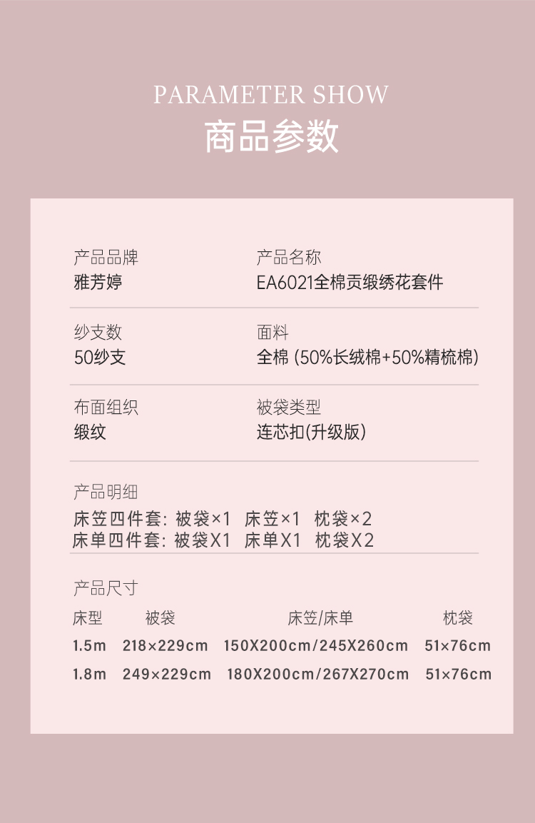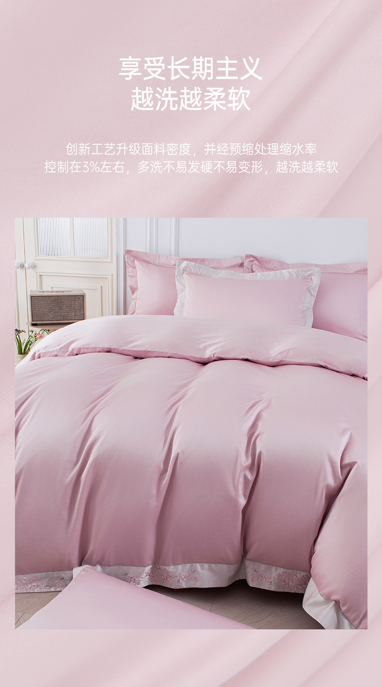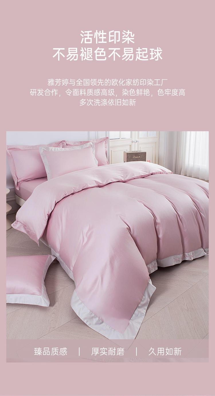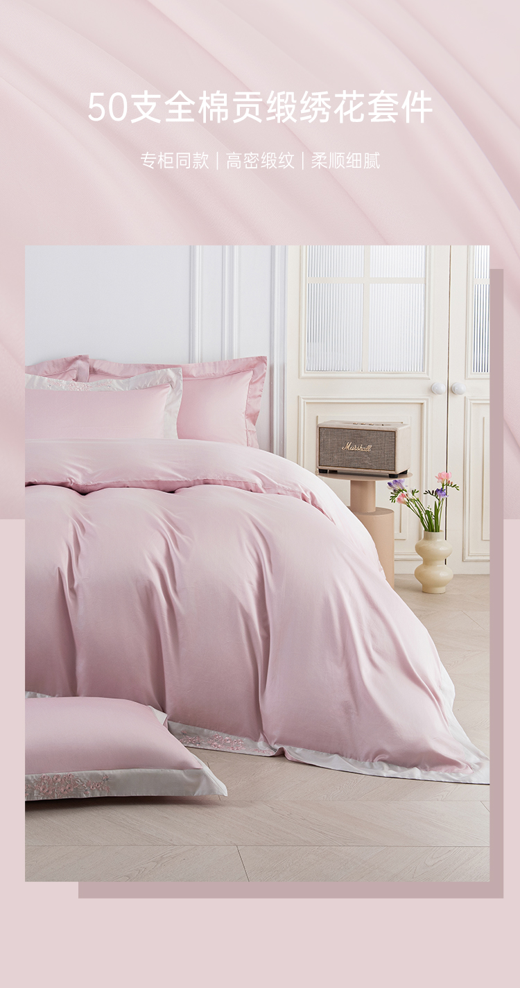 2025年秋季新款雅芳婷50支全棉贡缎绣花床上四件套纯棉床笠款套件