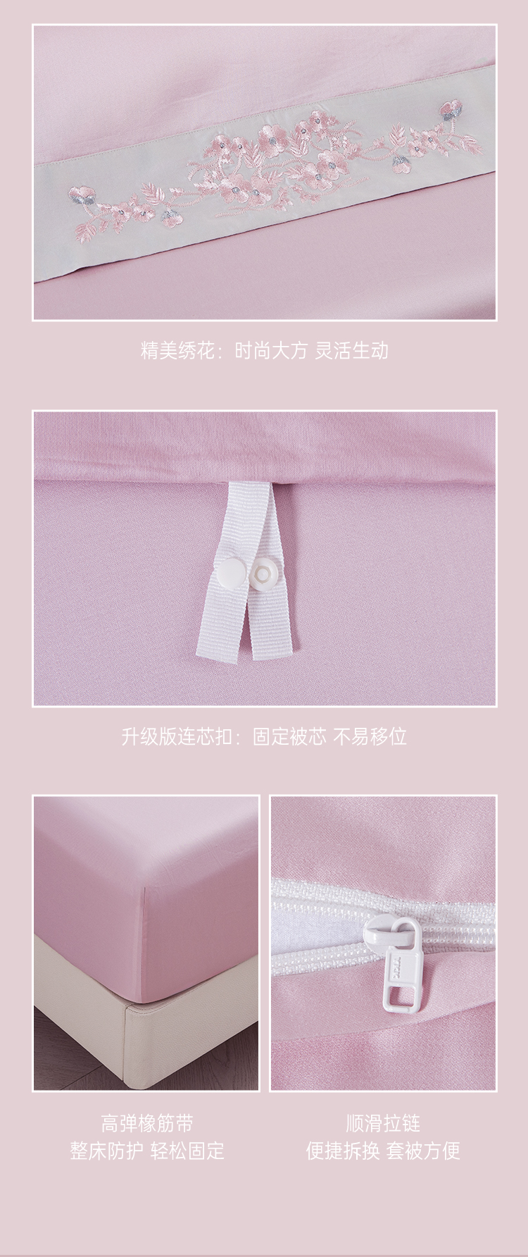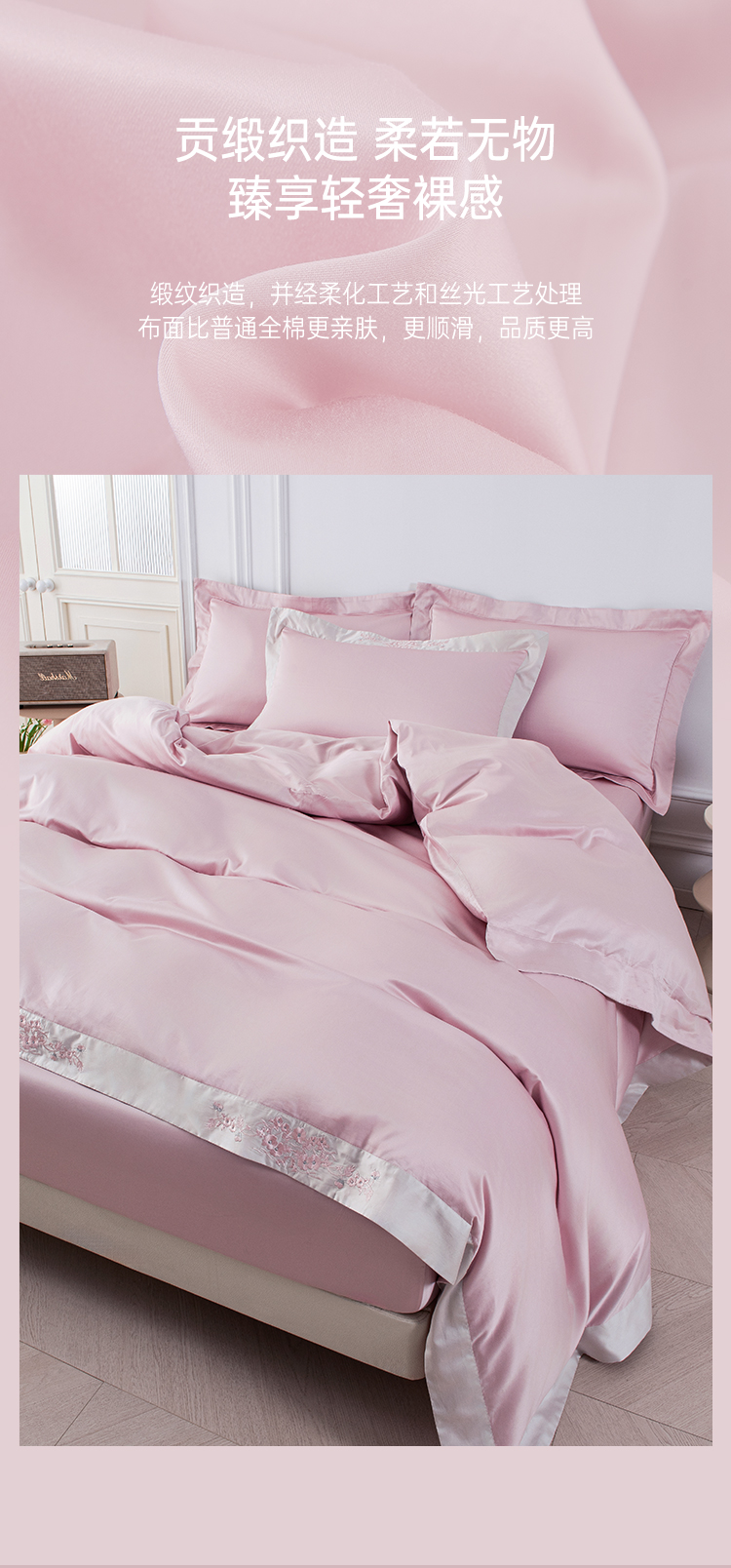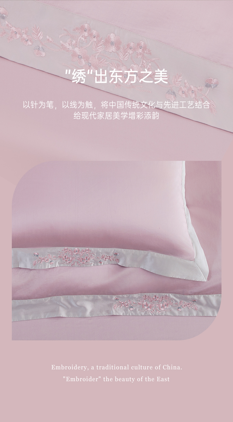 2025年秋季新款雅芳婷50支全棉贡缎绣花床上四件套纯棉床笠款套件