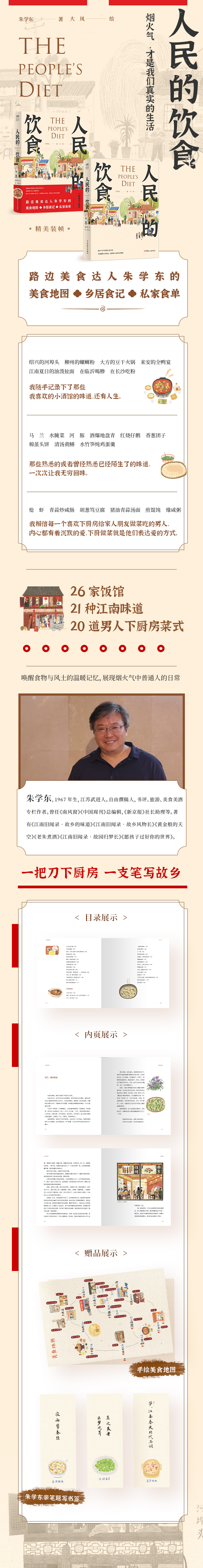 书中的26家饭馆、21种江南味道、20道私家下厨房菜式,佐以45幅手绘插图,唤醒食物与风土的温暖记忆,展现烟火气中普通人的日常,这样的人民的饮食中,有顽强的生存意志,延续着人民的生活滋味。