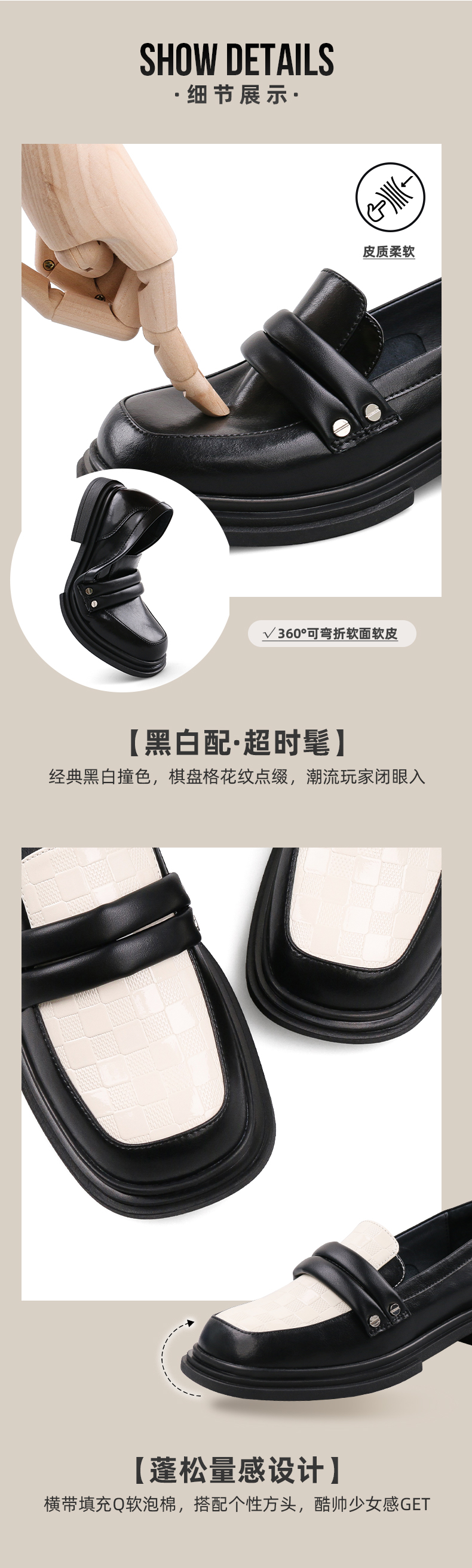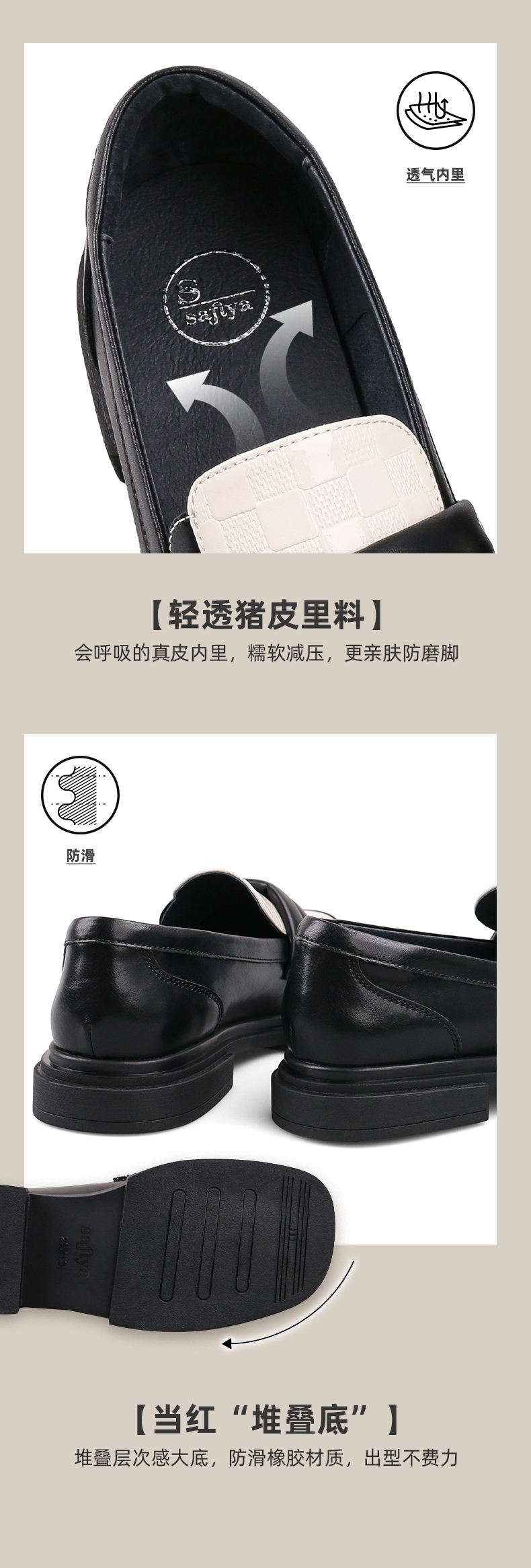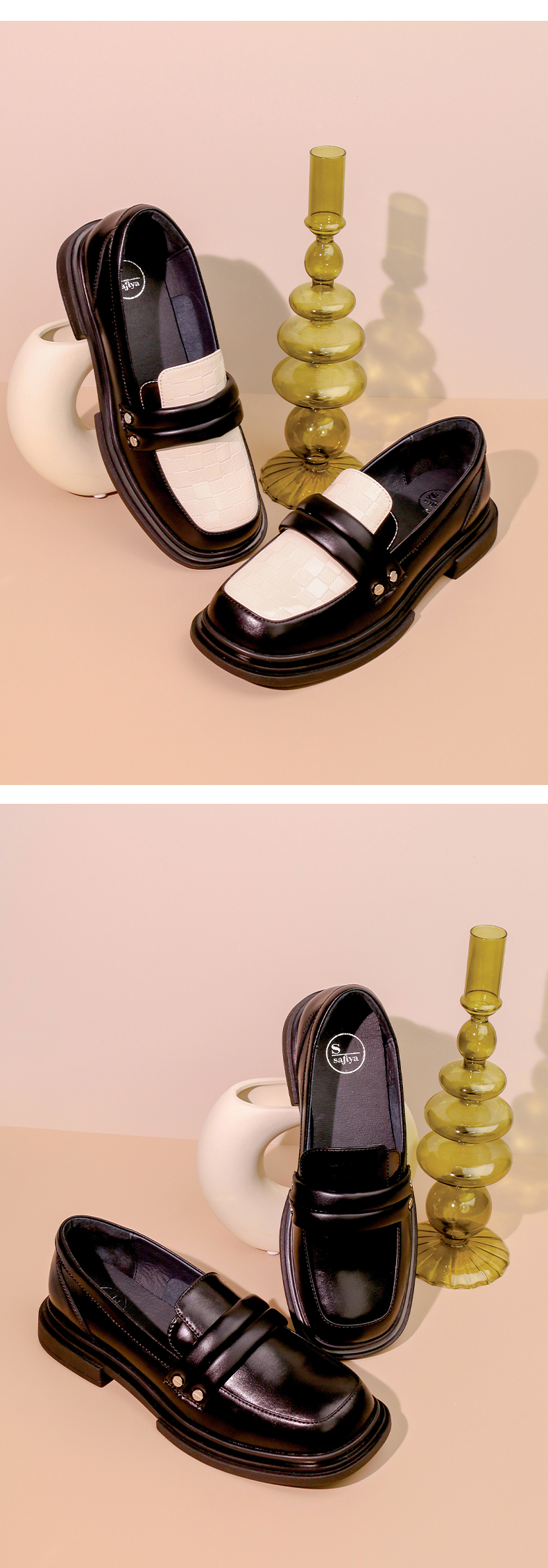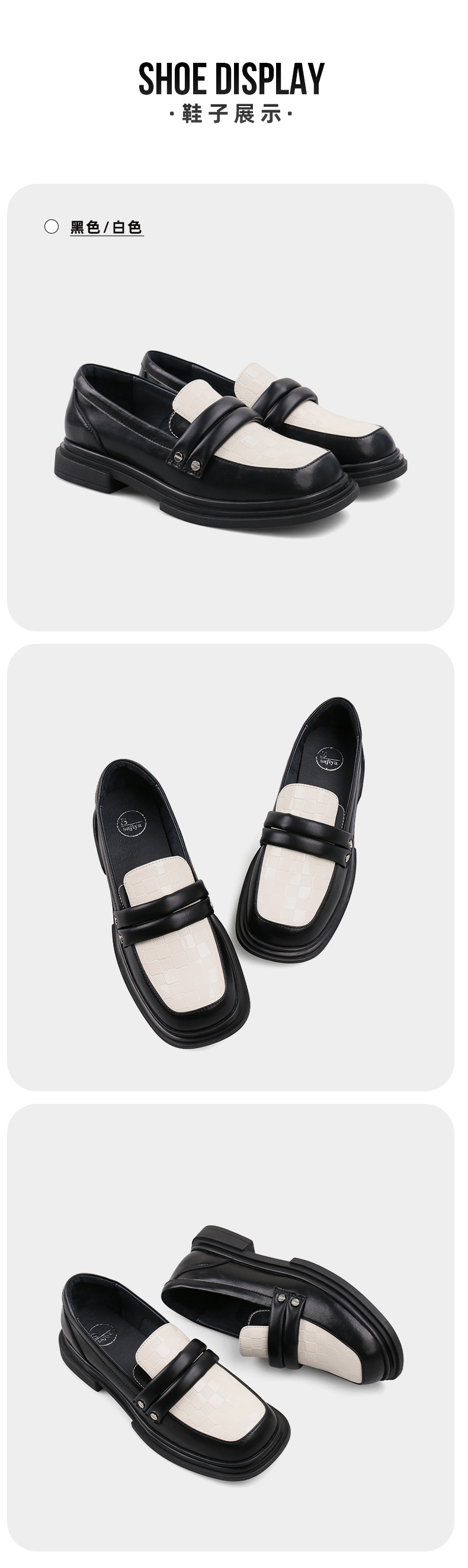 Safiya/索菲娅 新潮小众2023春季新款设计感方头粗跟拼色乐福鞋 SF31112037