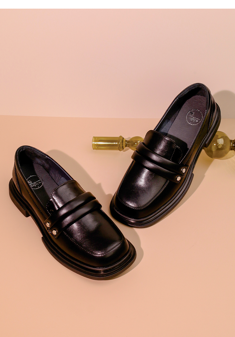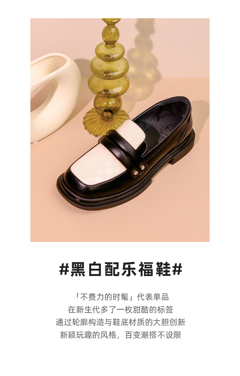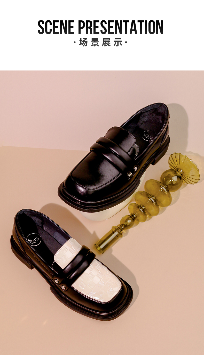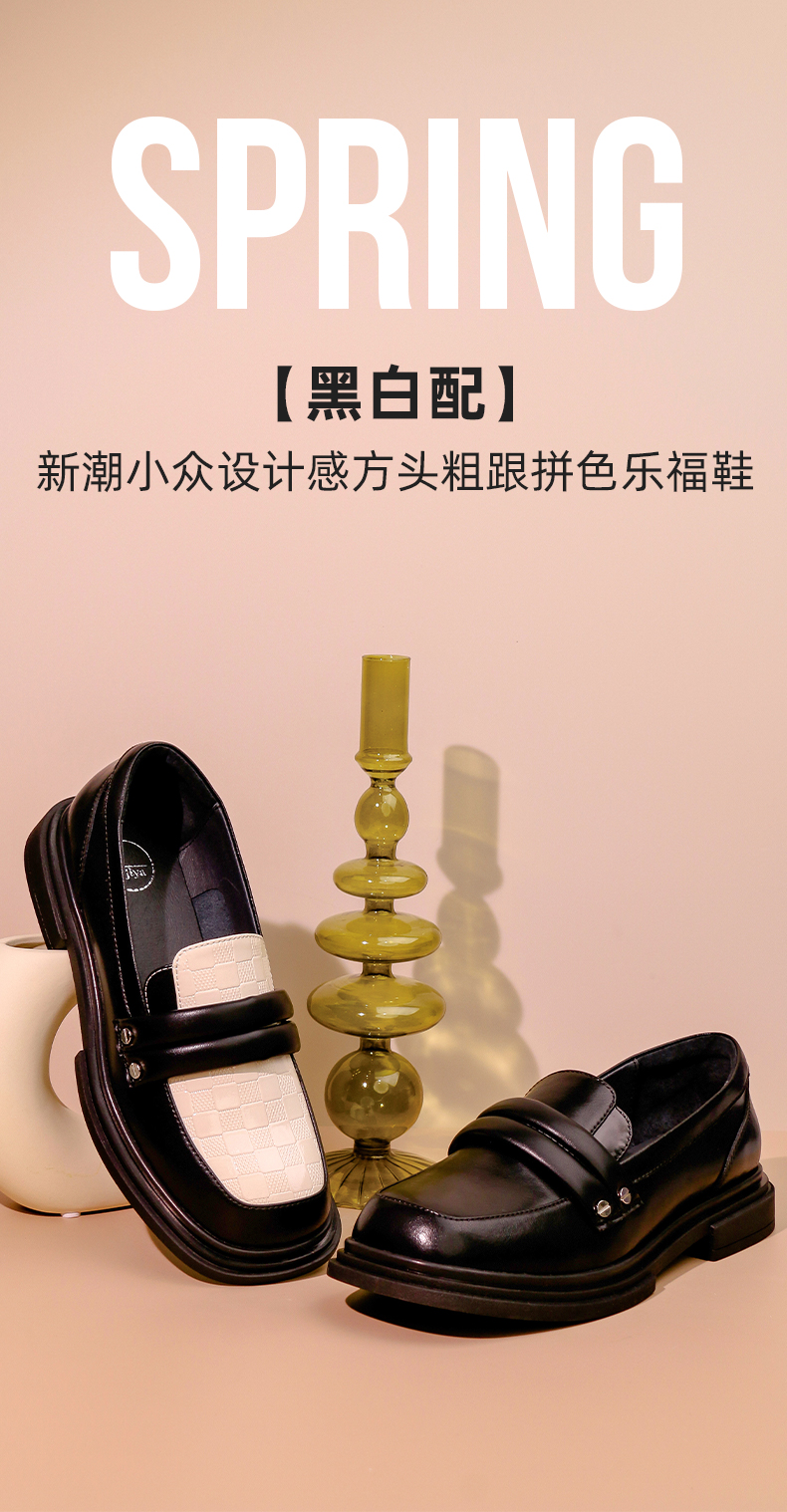 Safiya/索菲娅 新潮小众2023春季新款设计感方头粗跟拼色乐福鞋 SF31112037