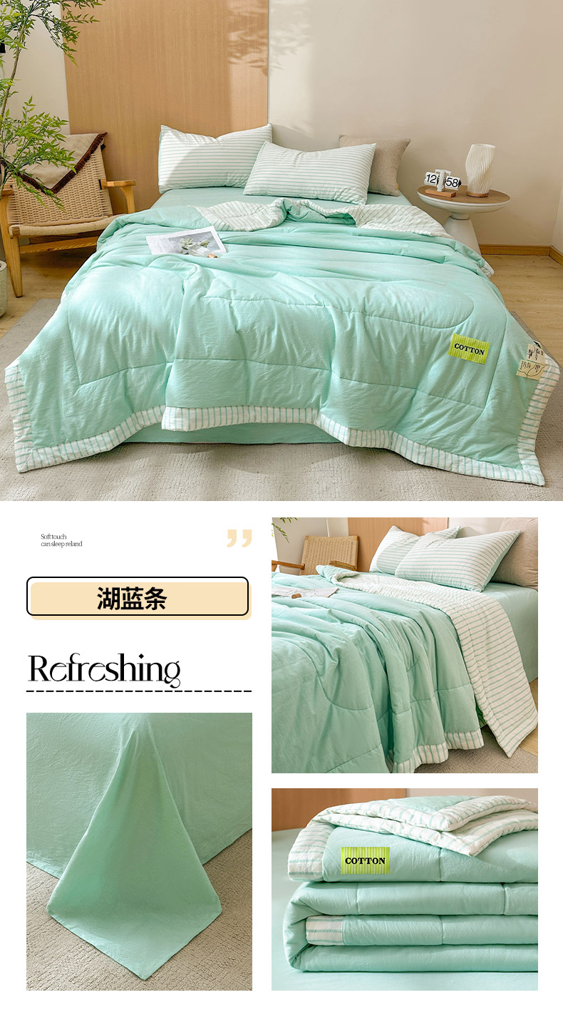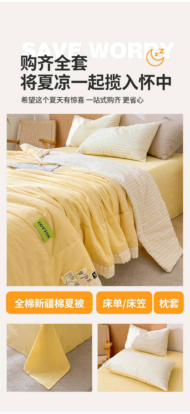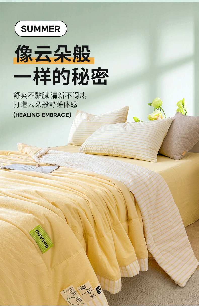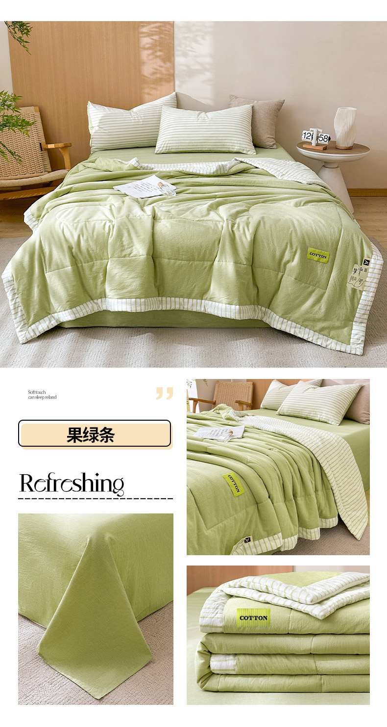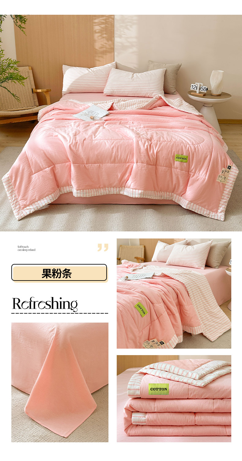 【品牌直发】加倍生活 A类里外全棉纯棉色织水洗棉棉花夏被四件套-果色系列 4色可选 空调被夏凉被