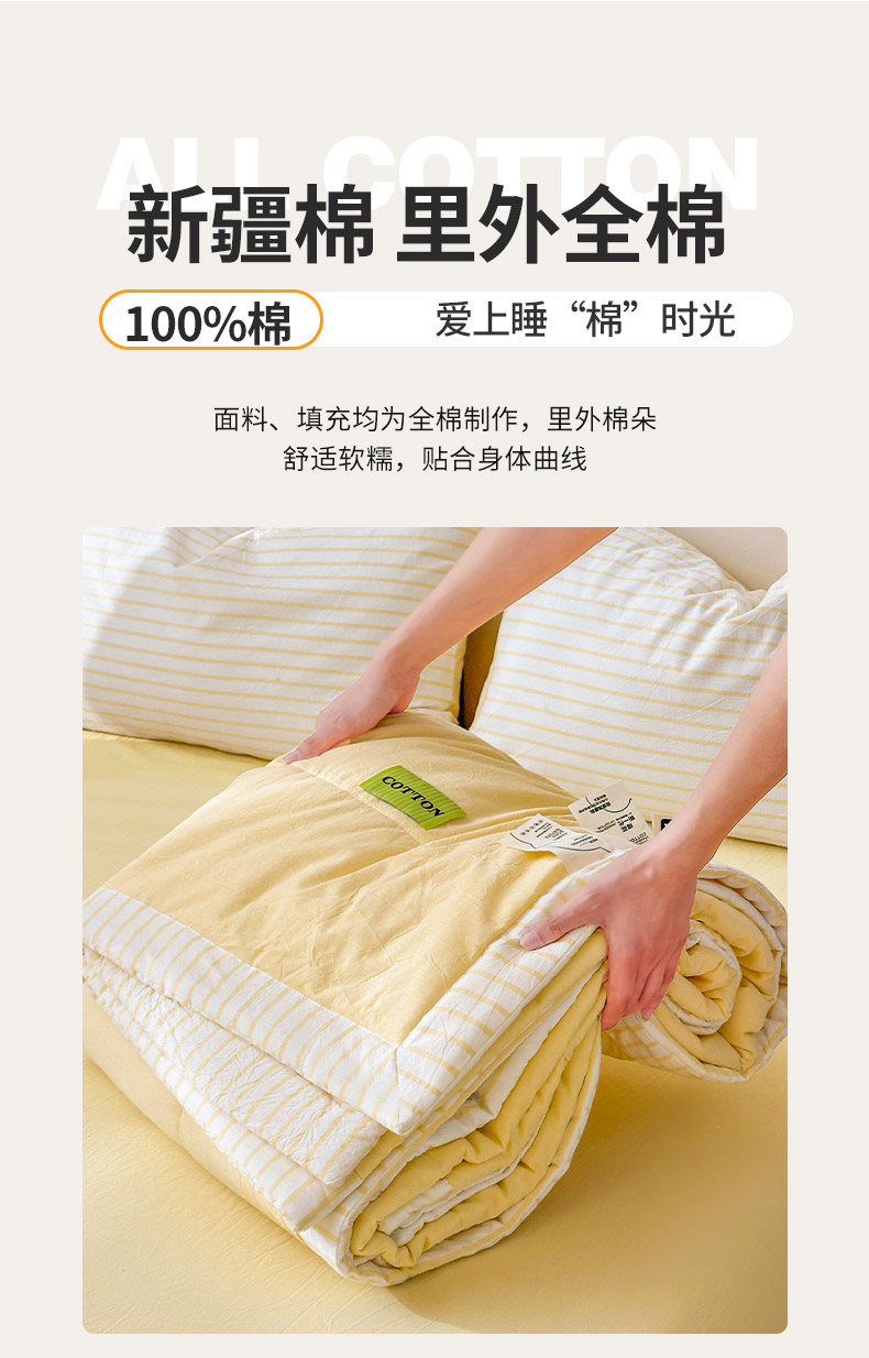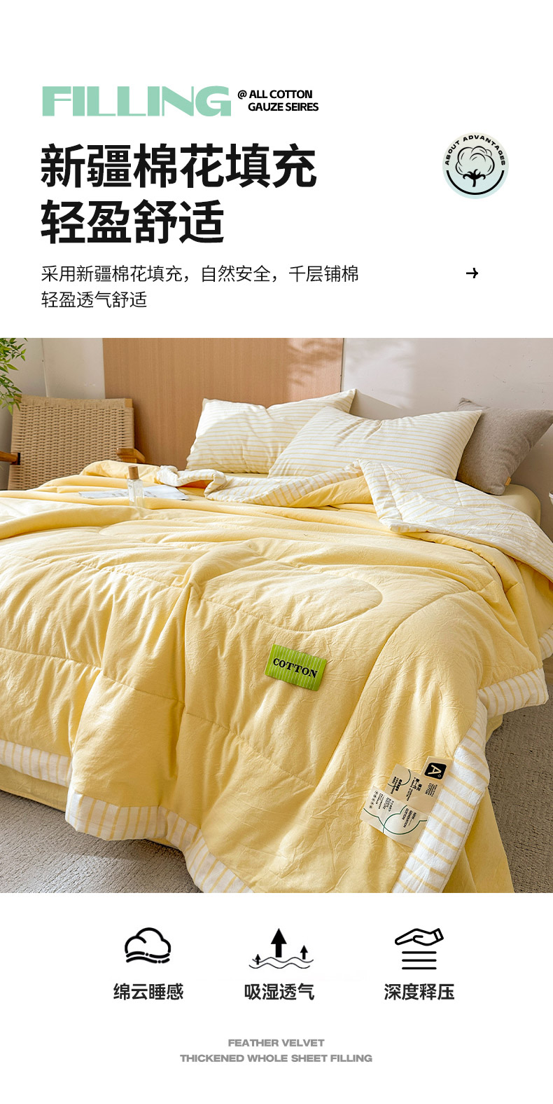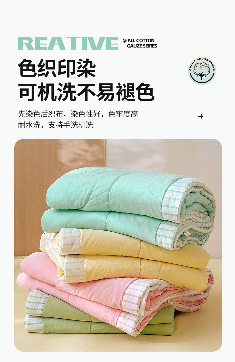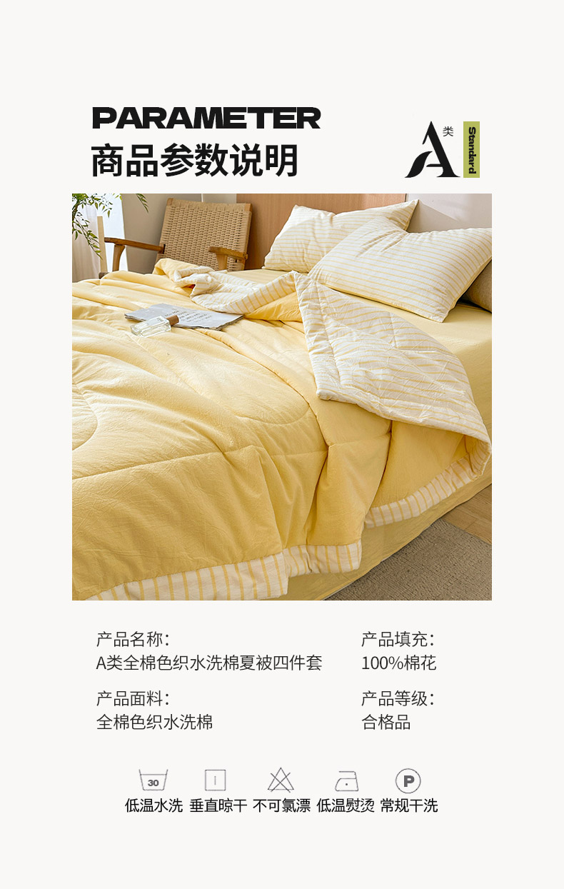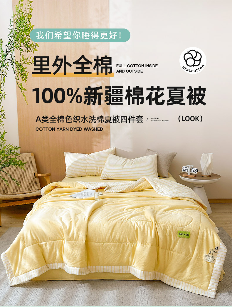 【品牌直发】加倍生活 A类里外全棉纯棉色织水洗棉棉花夏被四件套-果色系列 4色可选 空调被夏凉被