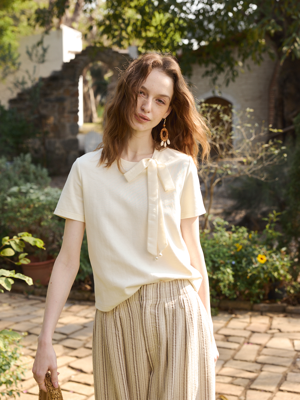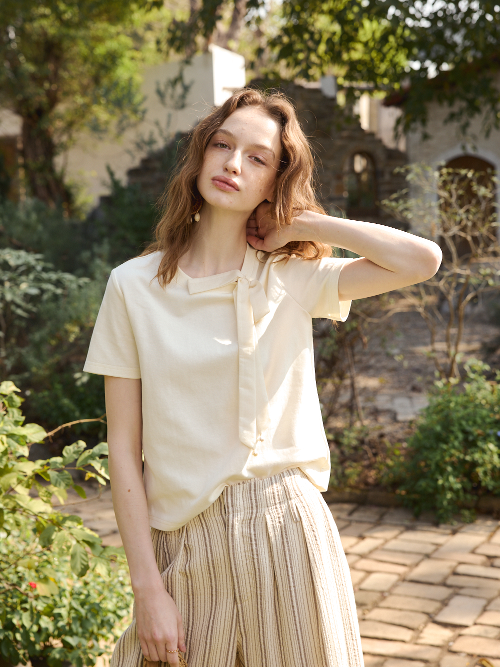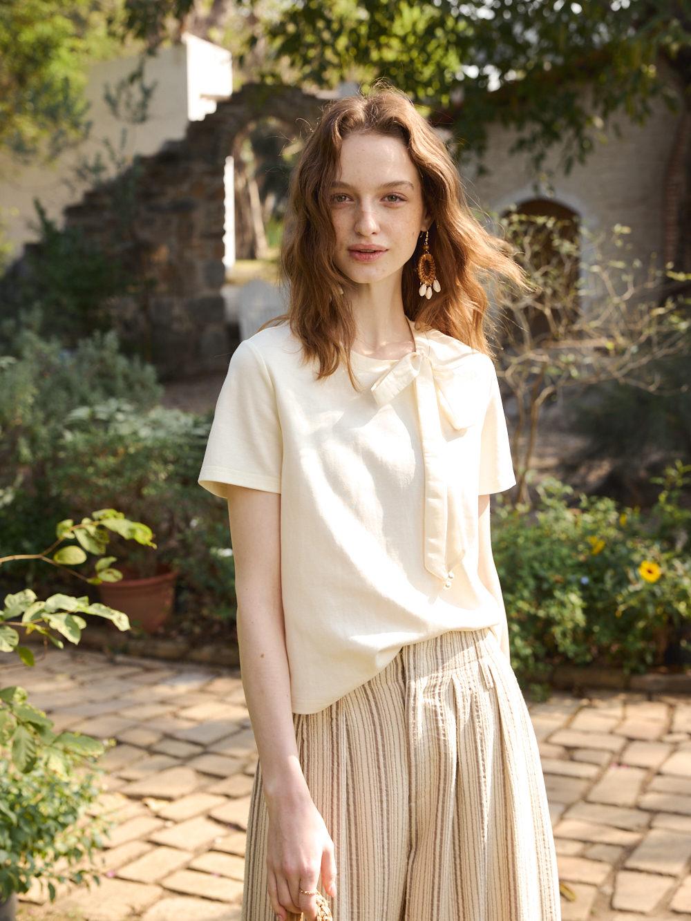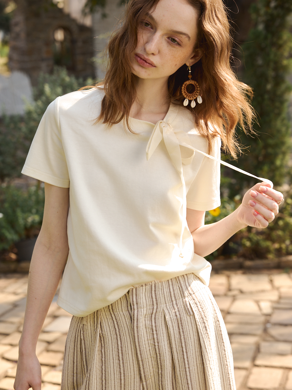 OLrain欧芮儿2026杏色T恤百搭显瘦舒适透气休闲上衣