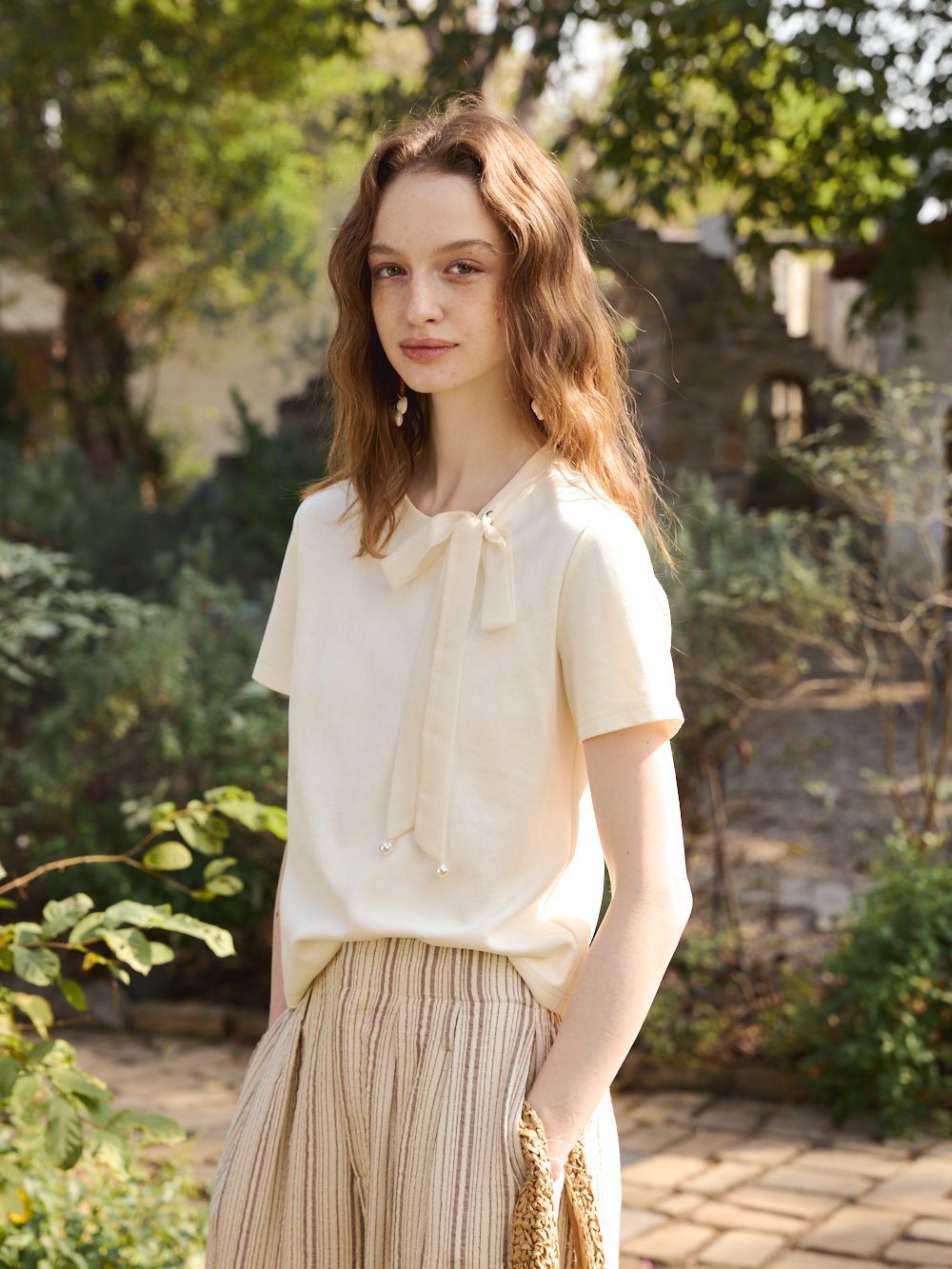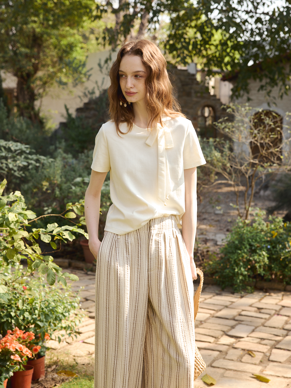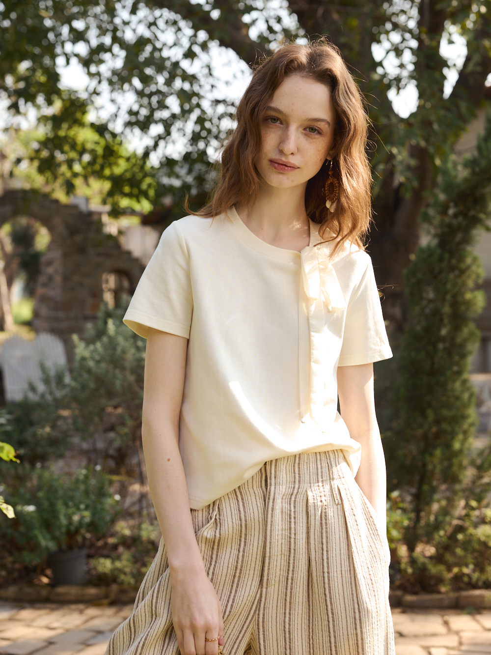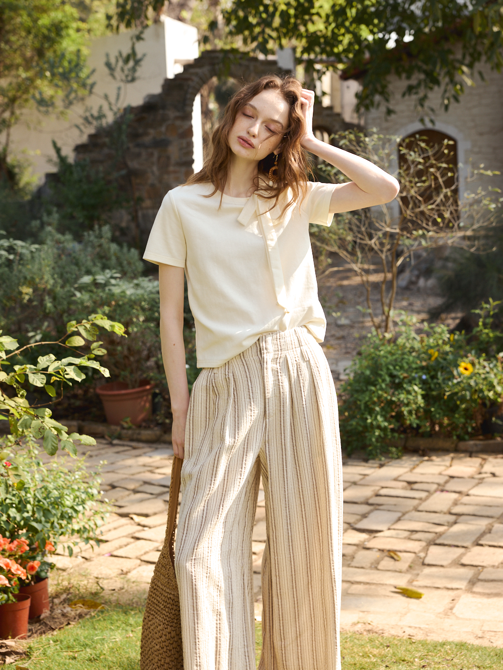 OLrain欧芮儿2026杏色T恤百搭显瘦舒适透气休闲上衣