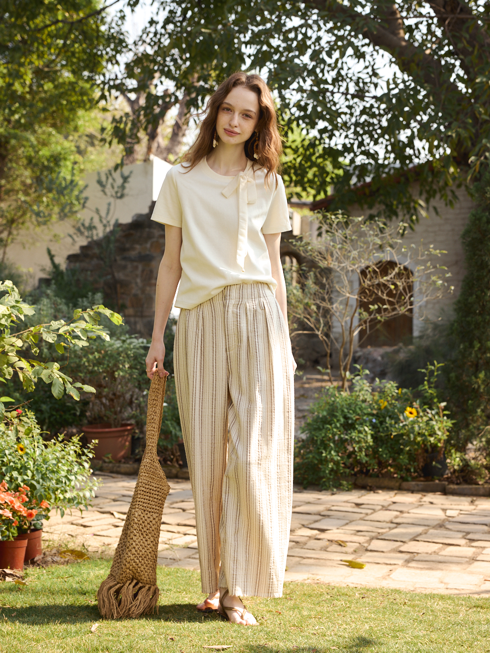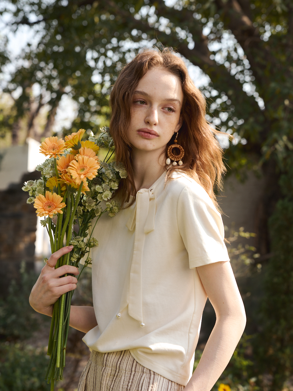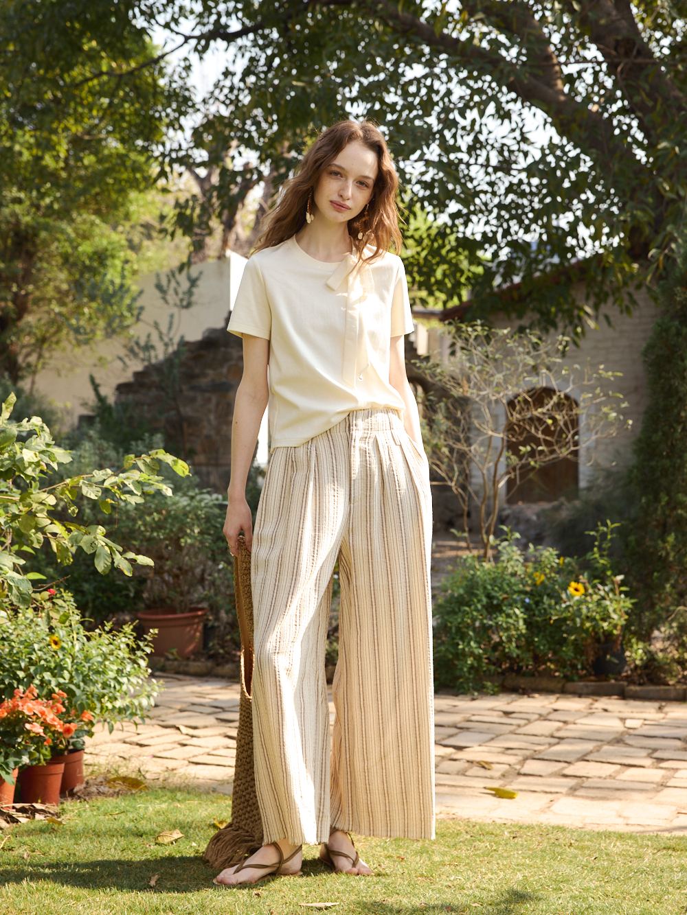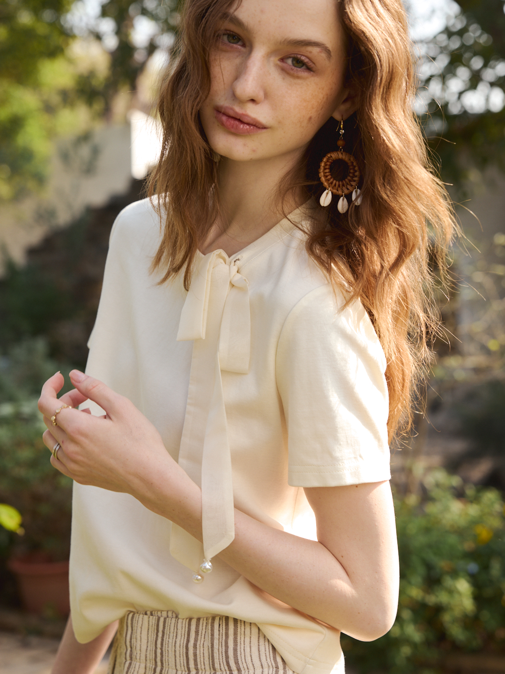OLrain欧芮儿2026杏色T恤百搭显瘦舒适透气休闲上衣