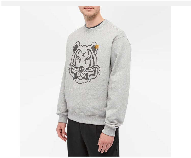KENZO 高田贤三 虎头印花+小虎头 男士卫衣 灰色 FB65 SW005 4MO 94