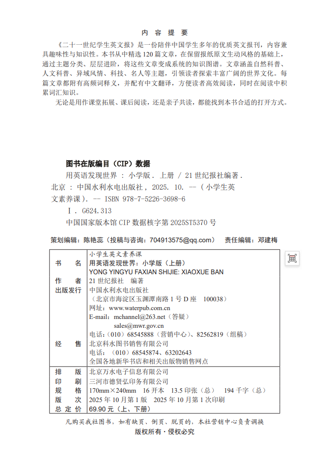 用英语发现世界:小学版(上下册)(小学生英文素养课)
