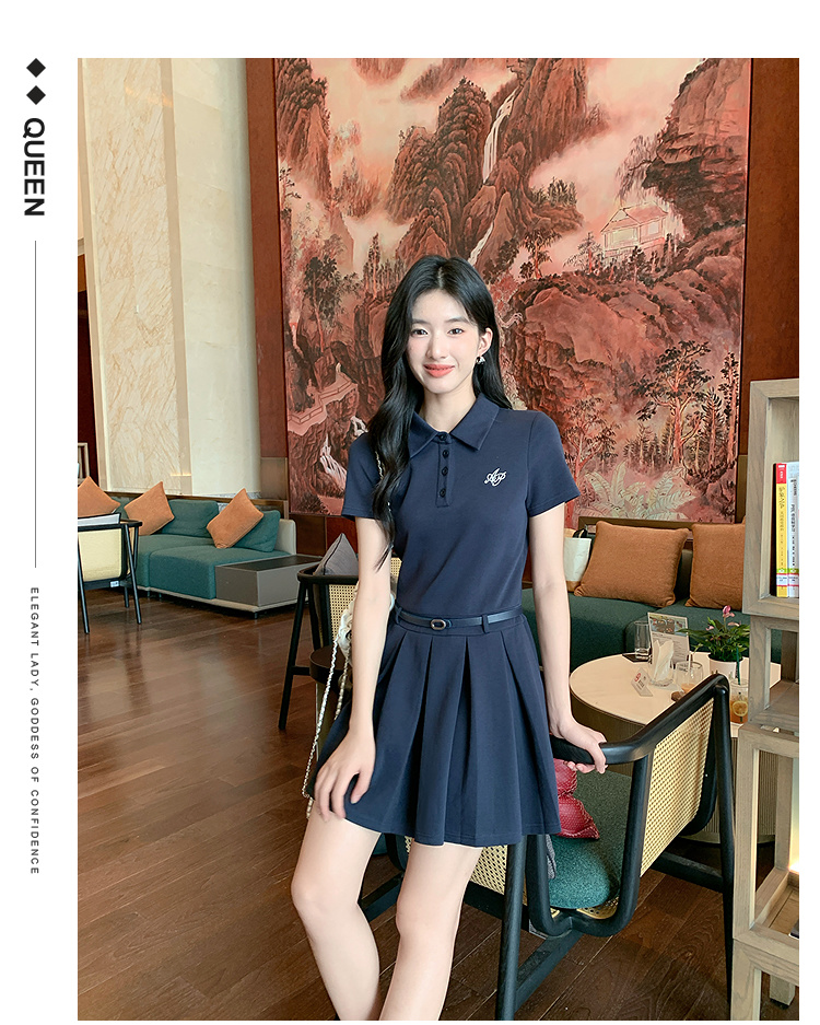 奢姿大码女装20265年夏季胖妹妹时尚学院风刺绣Polo领短袖连衣裙9952880120