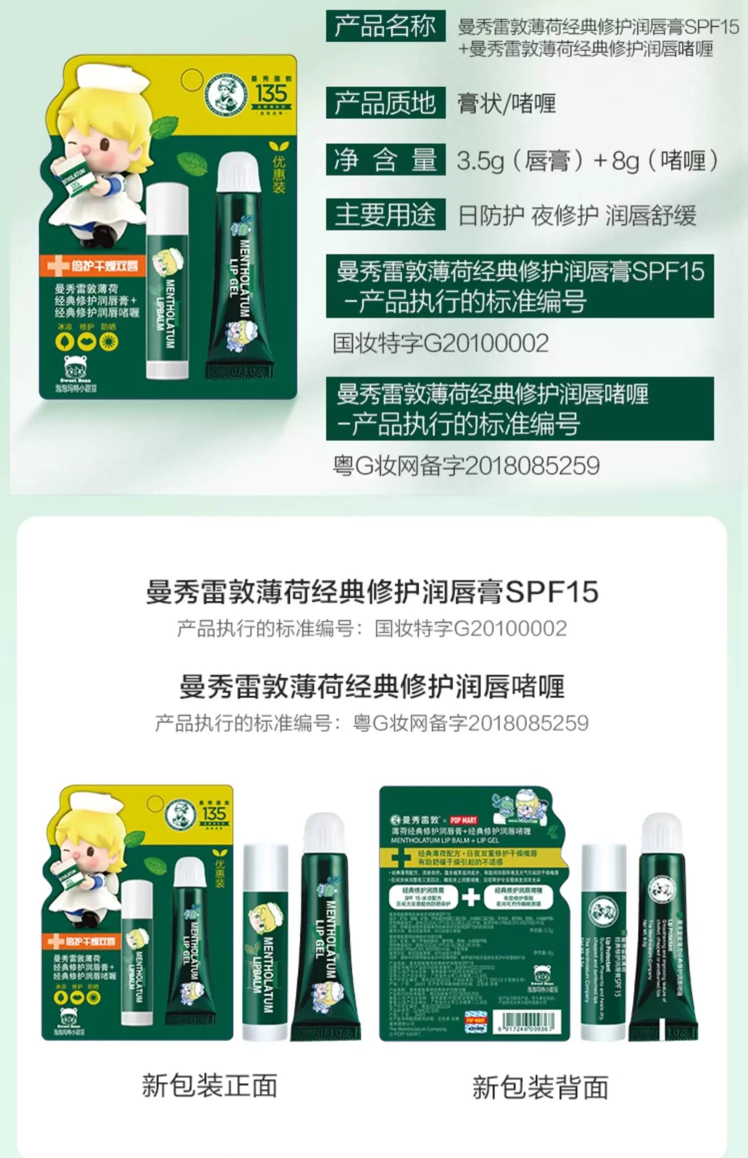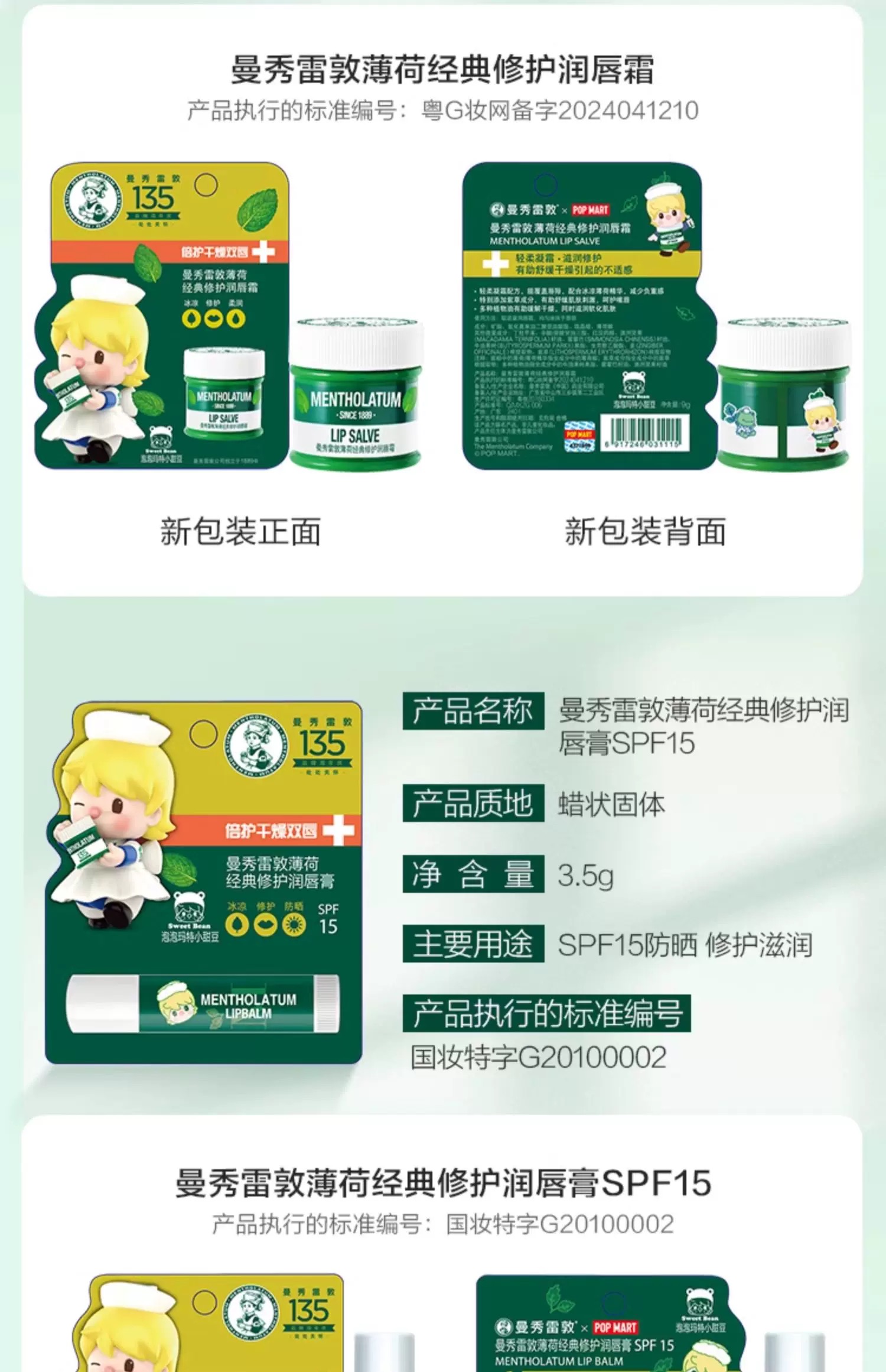 曼秀雷敦经典修护润唇霜(小甜豆款)