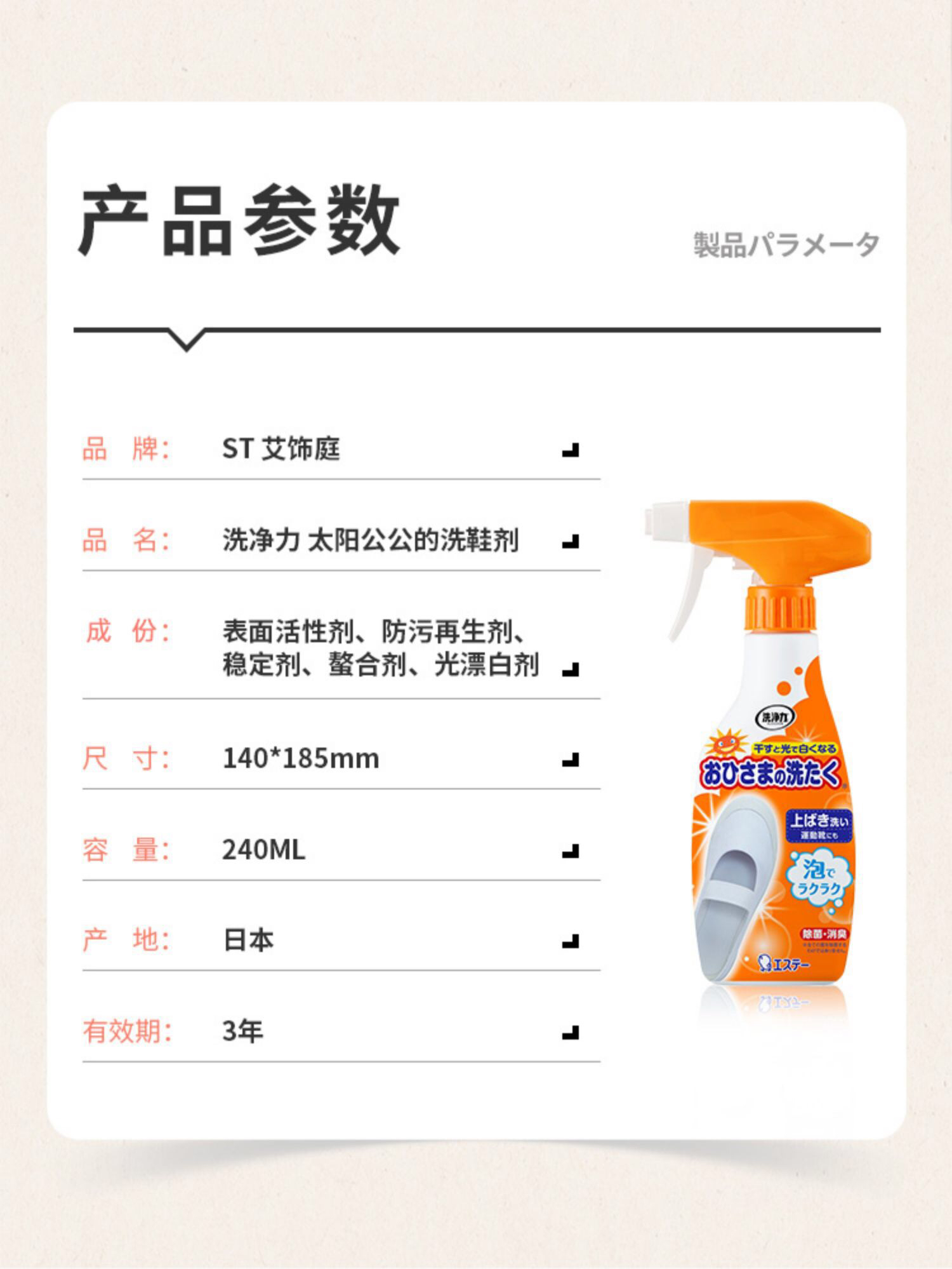日本ST小鸡仔小白鞋清洁剂-小白鞋神器去污黄泡沫喷雾-会员6折