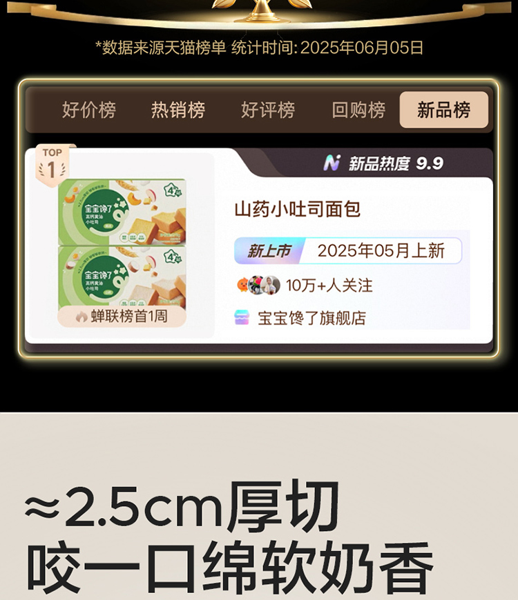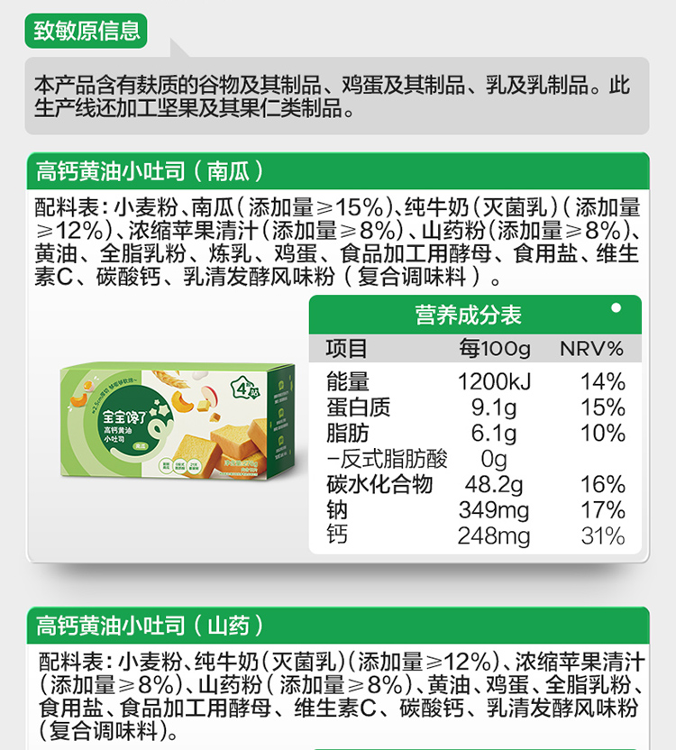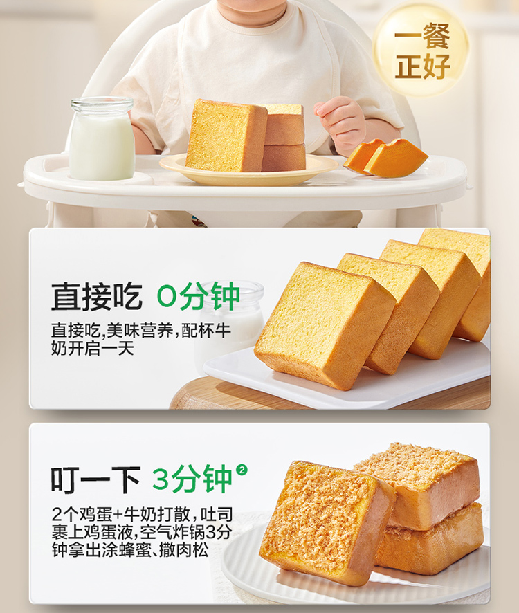 【宝宝馋了】益生元高钙山药/南瓜吐司儿童早餐面包,此商品为短保商品,不支持7天无理由退换货,不建议囤货
