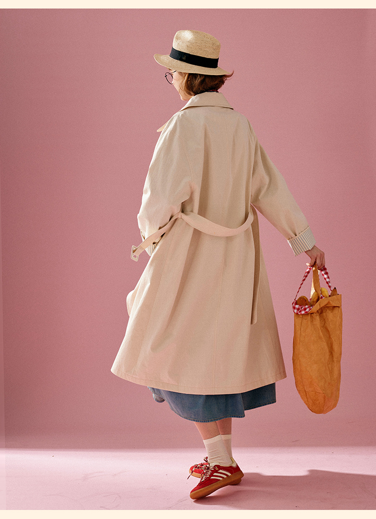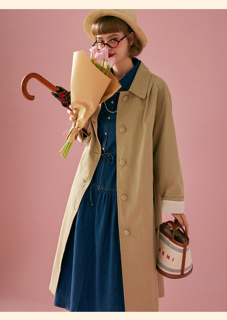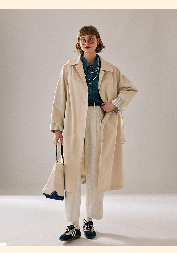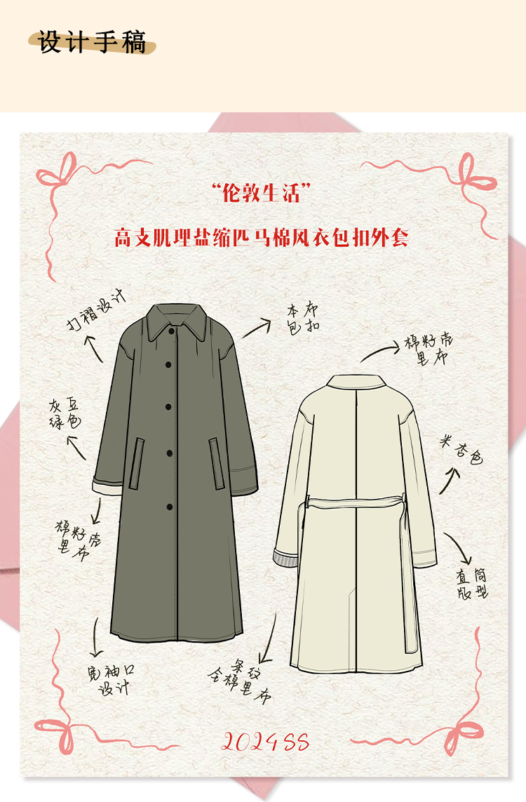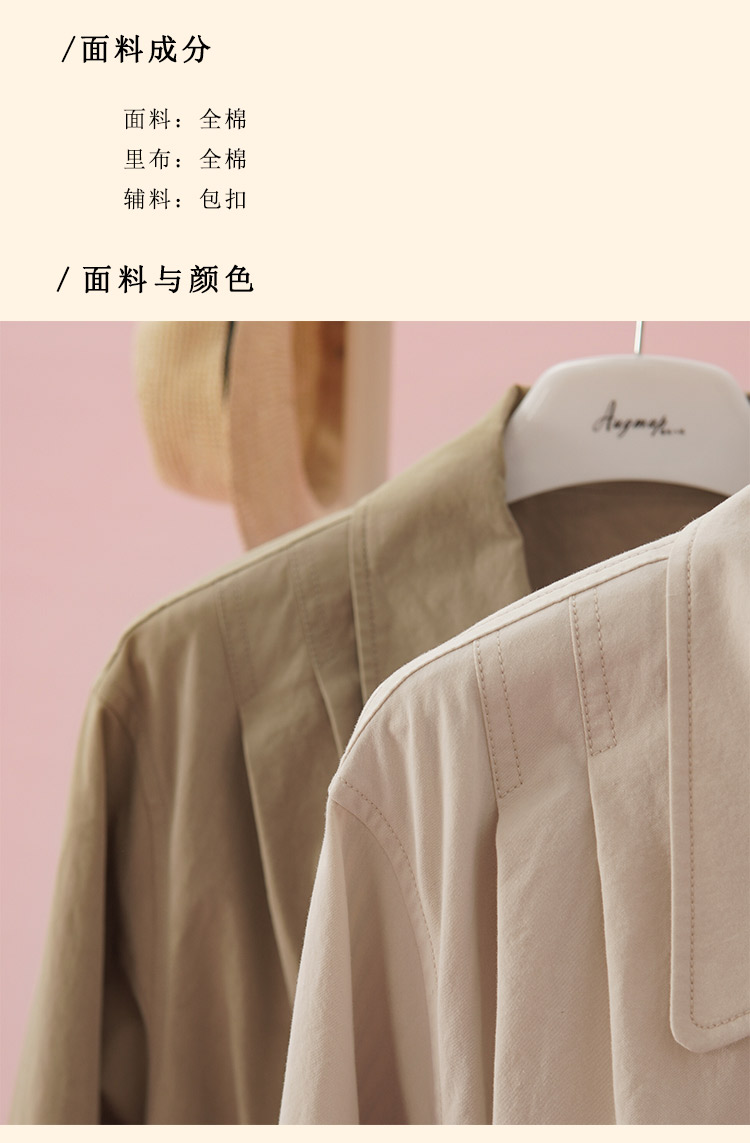 浮生八记/24A030/高支肌理盐缩匹马棉风衣包扣外套