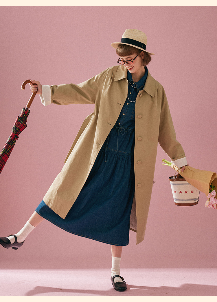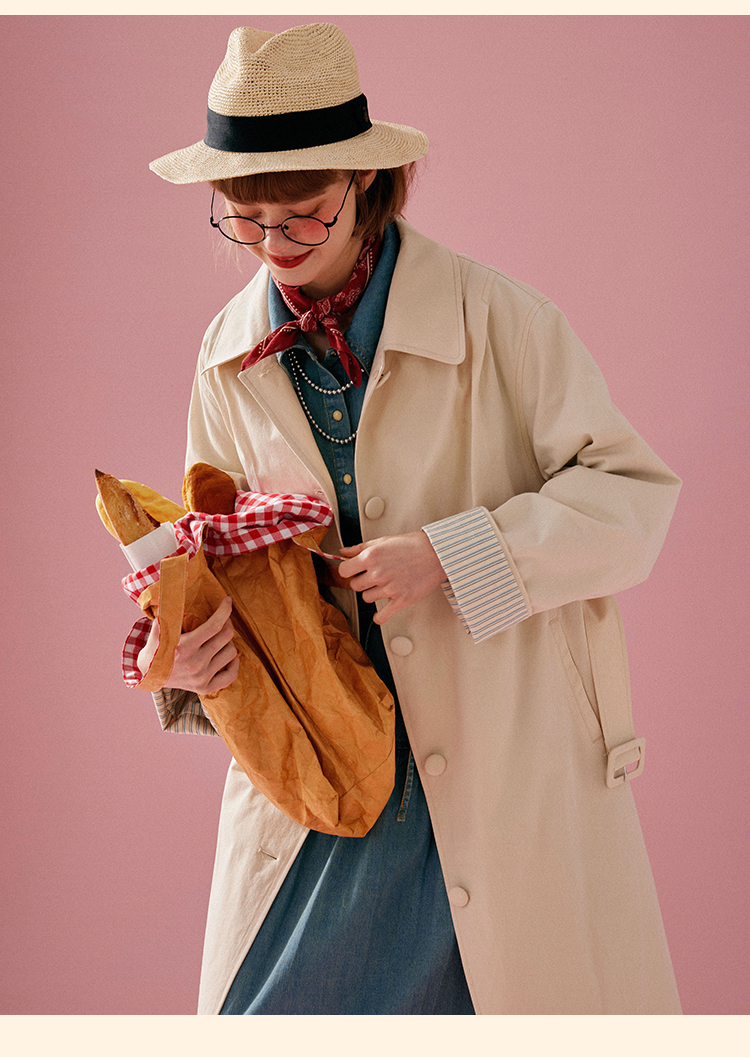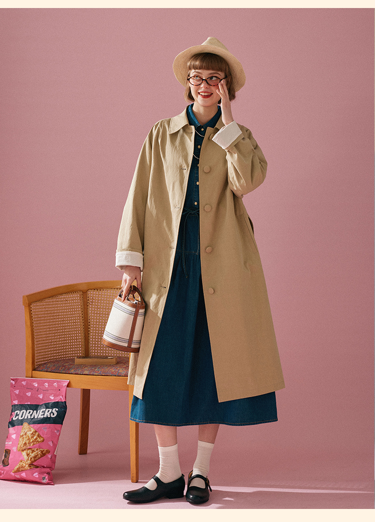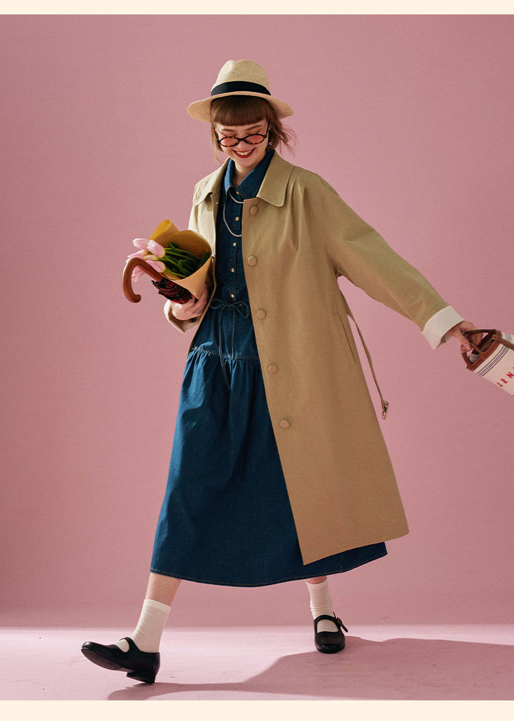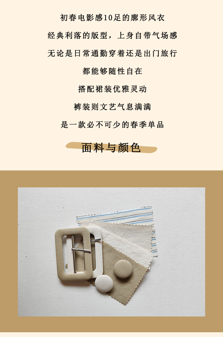 浮生八记/24A030/高支肌理盐缩匹马棉风衣包扣外套