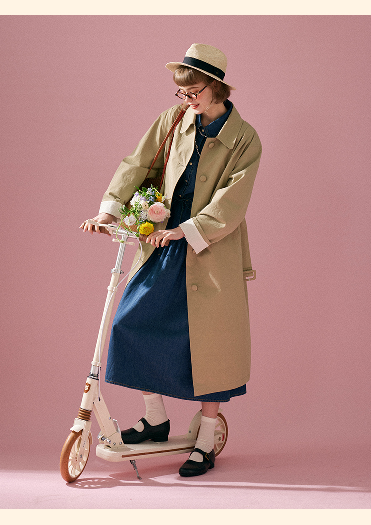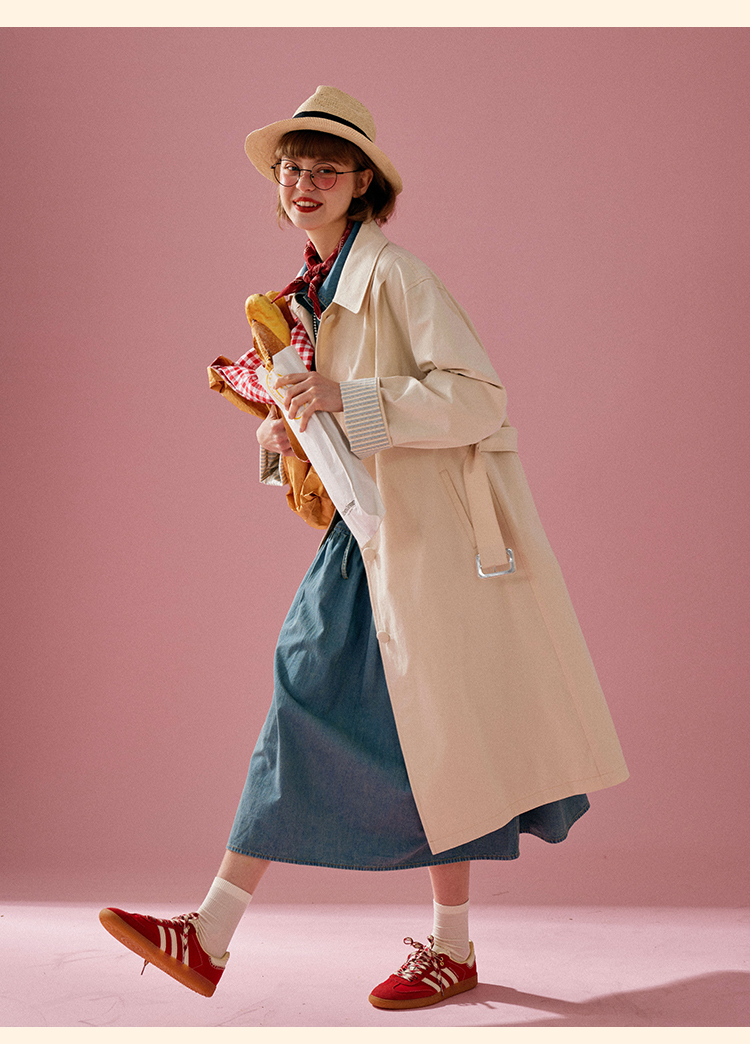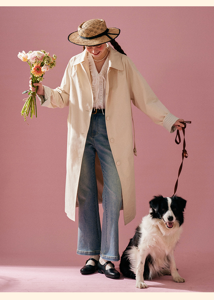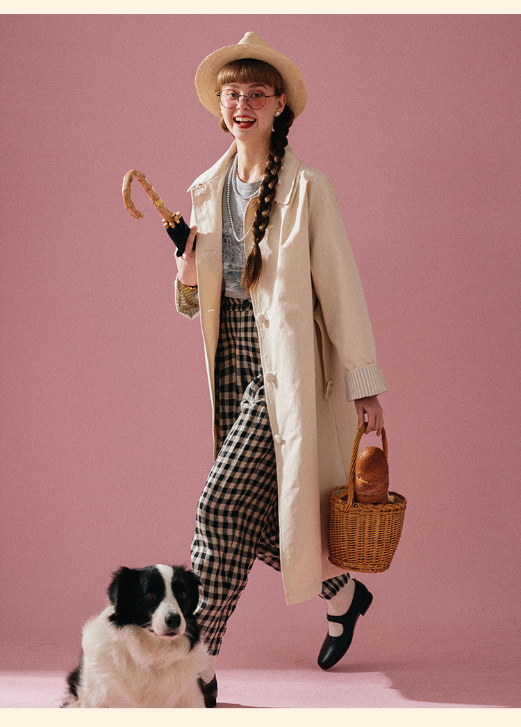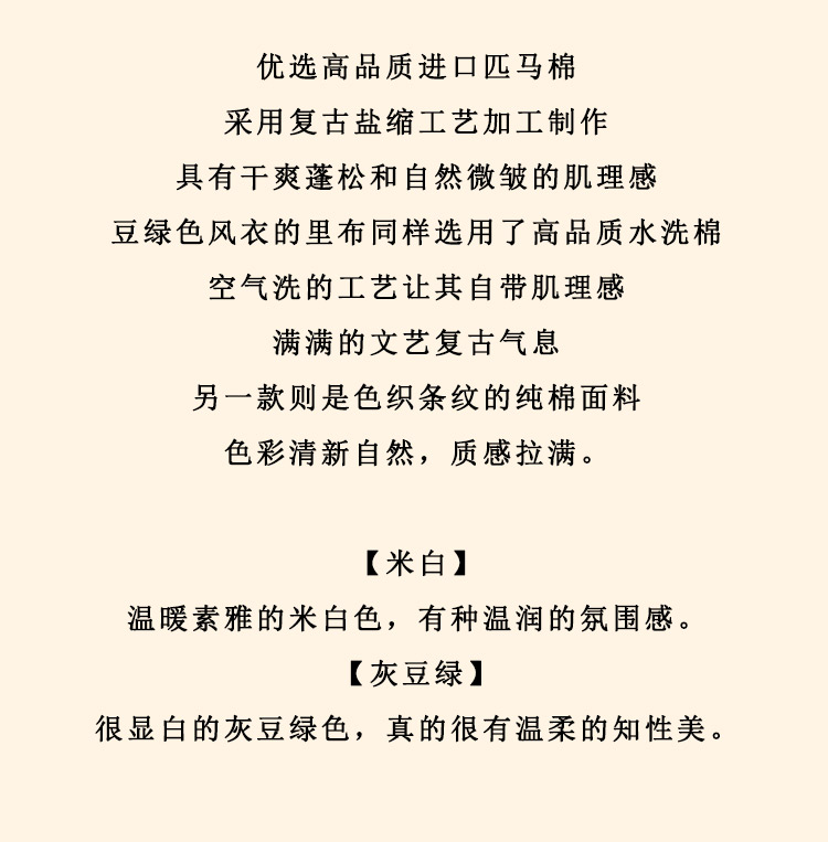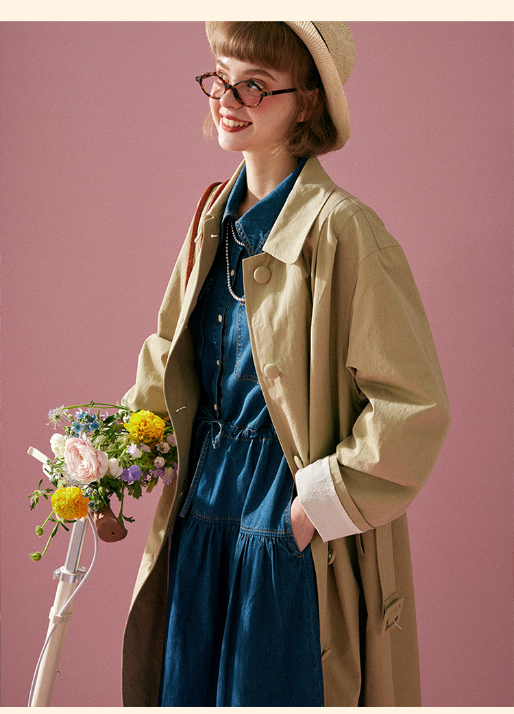 浮生八记/24A030/高支肌理盐缩匹马棉风衣包扣外套