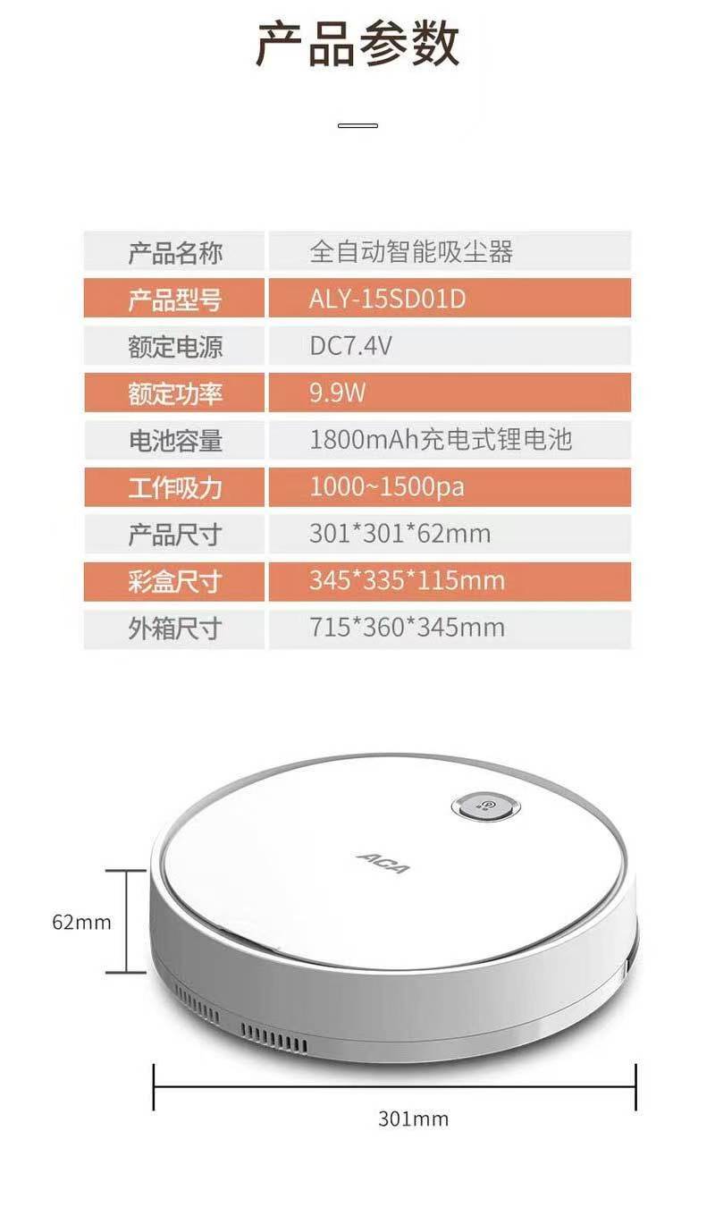 ACA扫地机器人家用全自动智能超薄吸尘吸尘器拖地一体一体机
