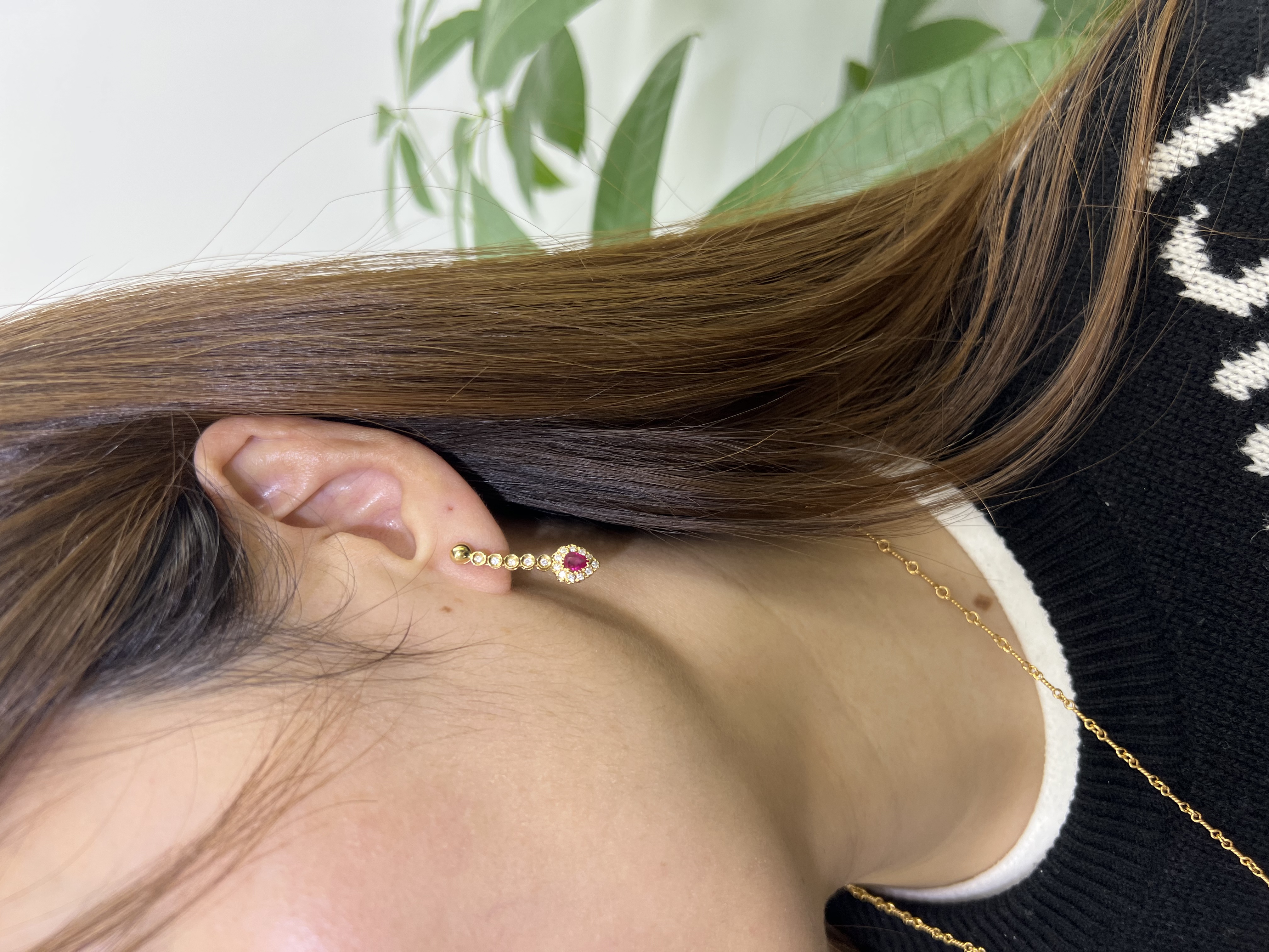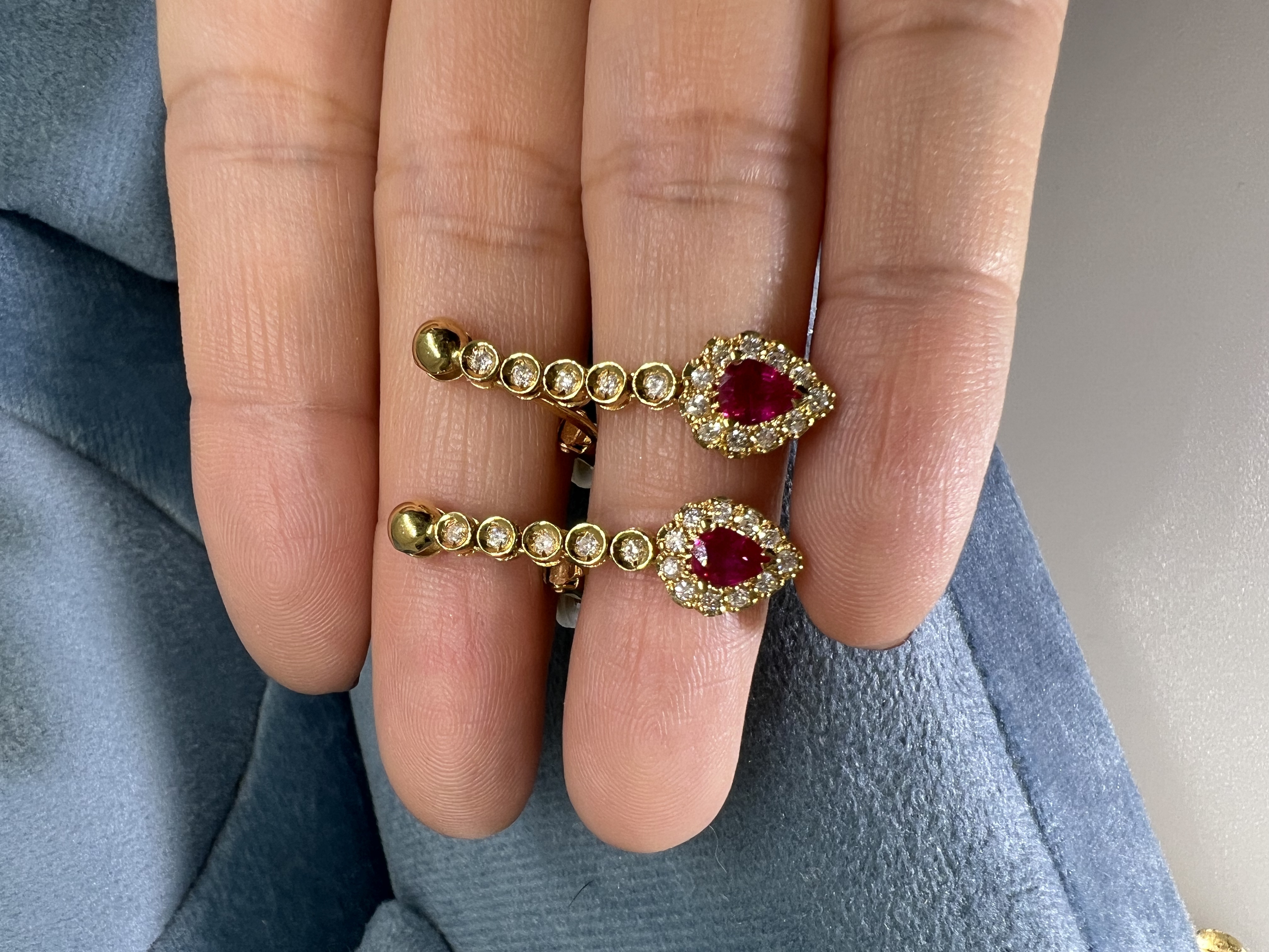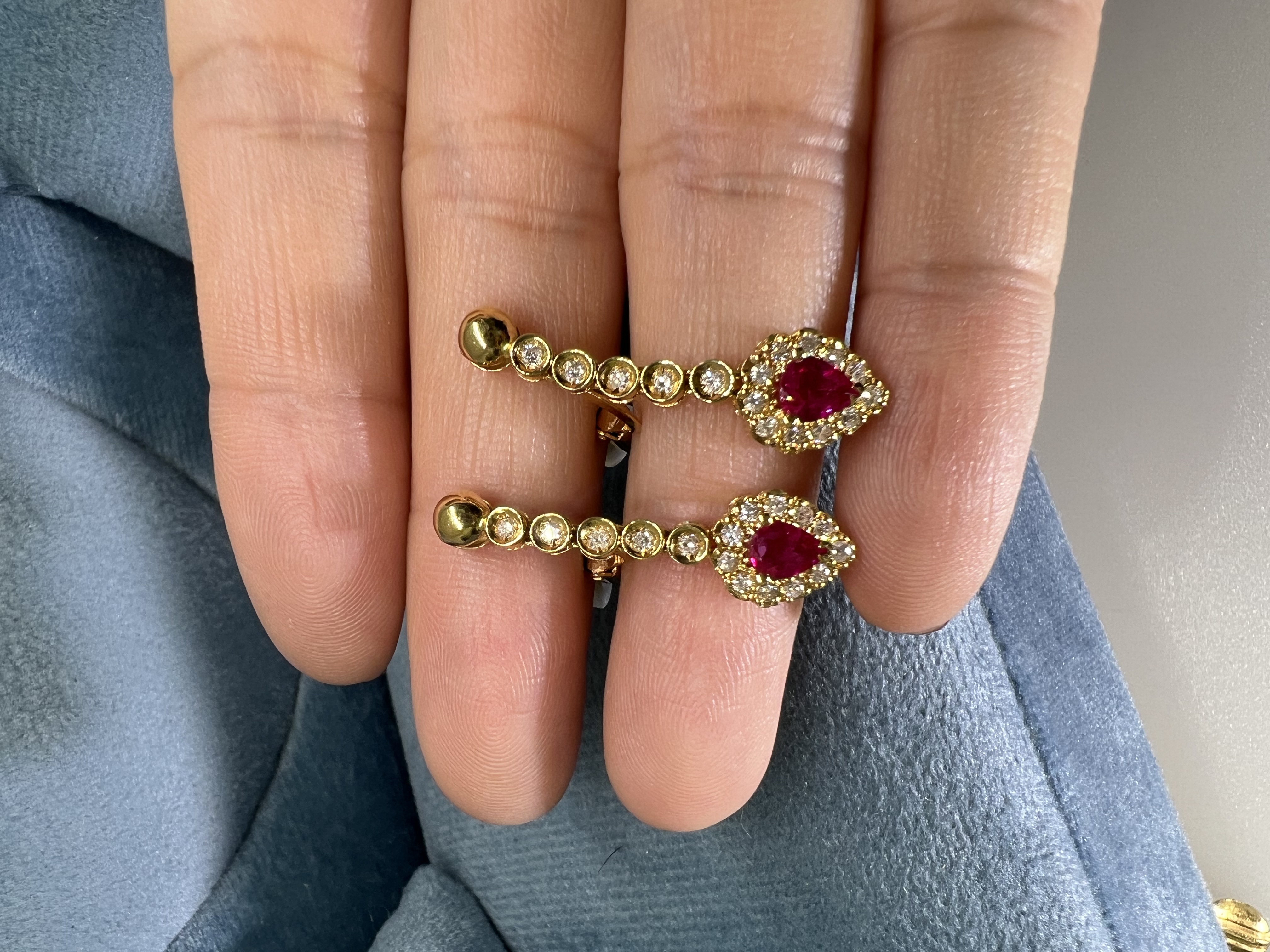 【挚友限定】灵蛇 18k金红宝石钻石耳夹 经典围镶款 耳坠红宝石0.8ct 钻石0.75ct 优雅耳坠款 弹力双夹 4.8g