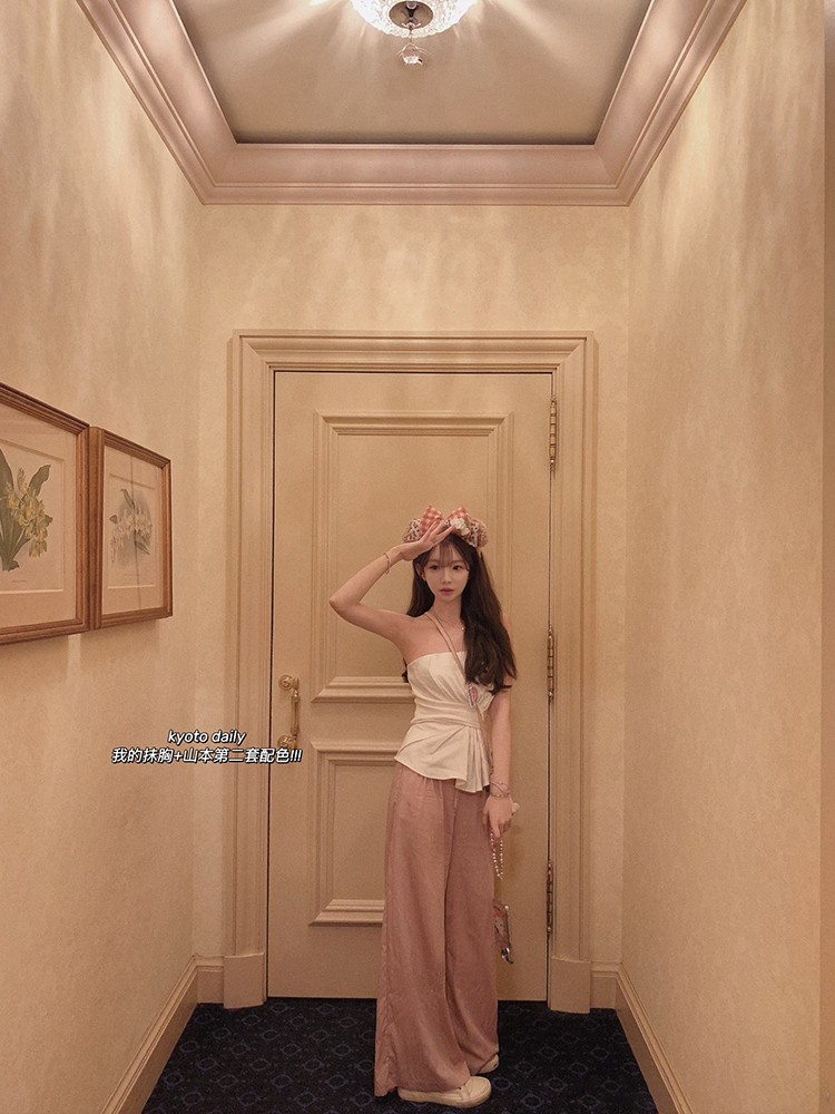 金蘑菇菇 夏日抹胸套组/ 时髦甜抹胸+工装裤套装夏季