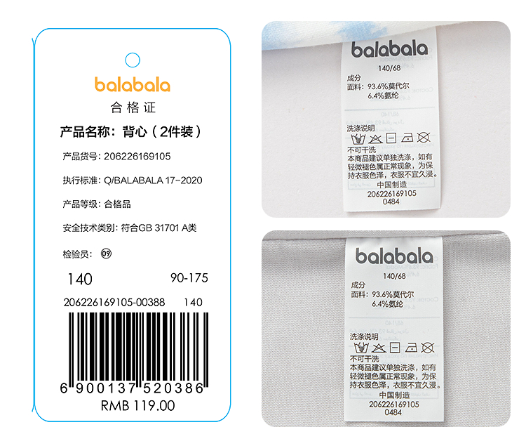 【商场同款】巴拉巴拉儿童背心夏季新款男童打底衫无袖舒适两件装