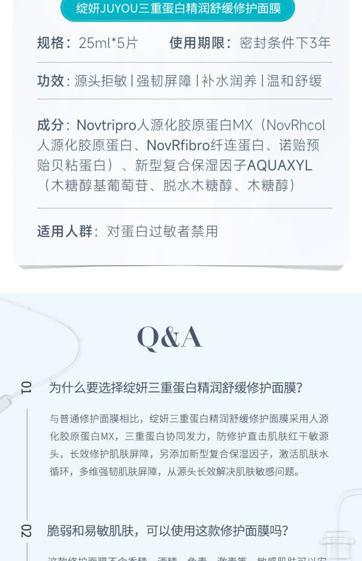 绽妍三重蛋白精润舒缓修护面膜25ml*5片/盒 【买1赠5】到手10片