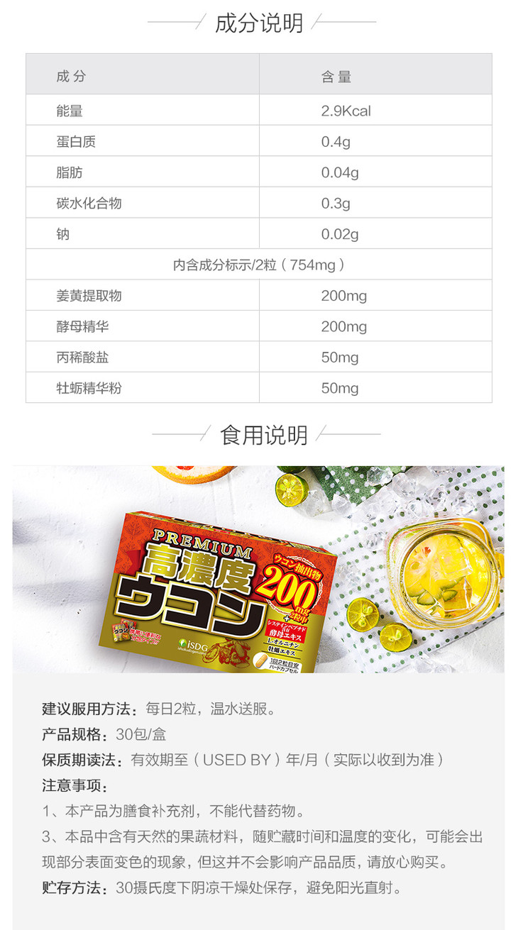 ISDG 日本进口高浓度姜黄60粒/盒 熬夜烟酒人士酒前胶囊 姜黄胶囊60粒/盒