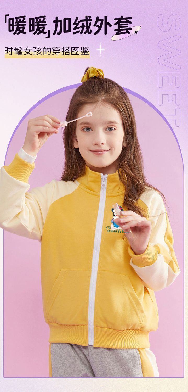 迪士尼女童加绒外套冬款2024新款棒球服儿童冬装大童加厚棉服潮酷