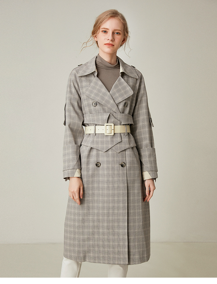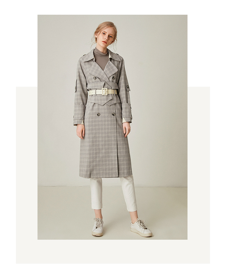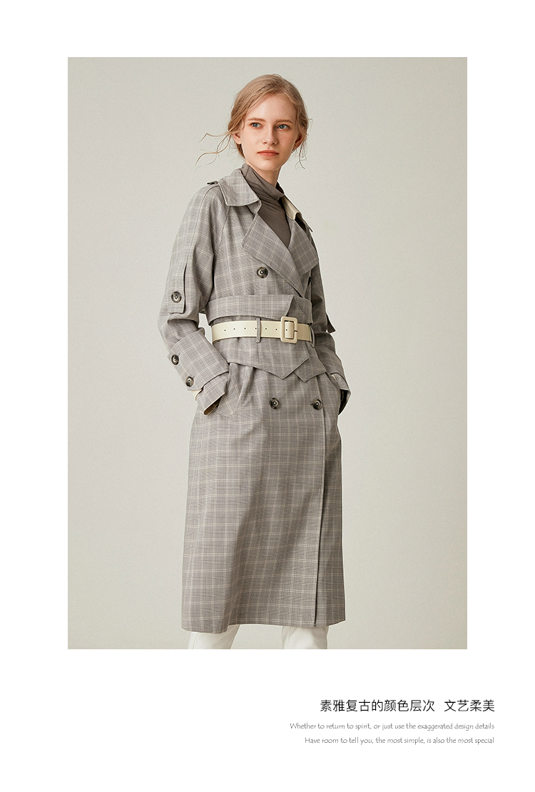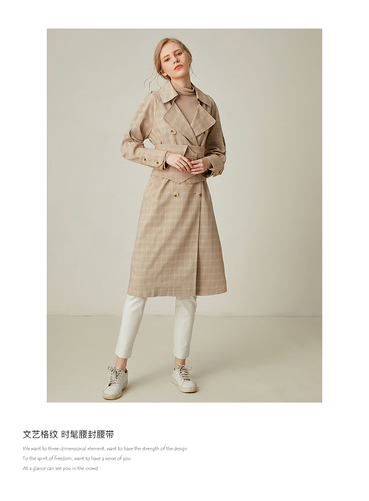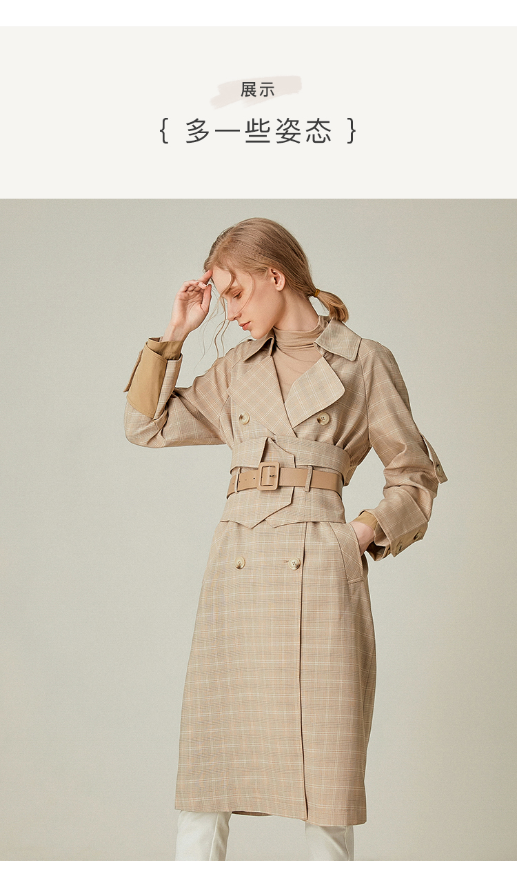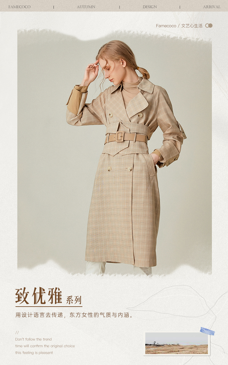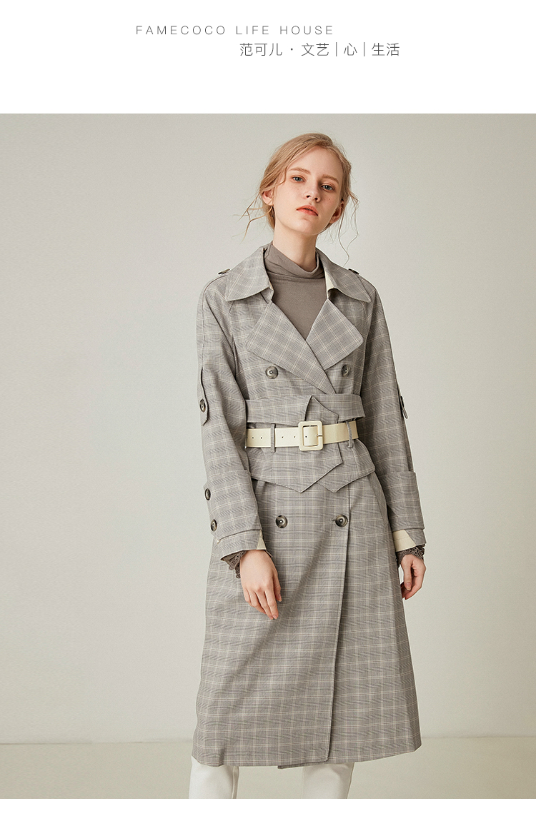 Famecoco范可儿气质风衣外套收腰高端中长款F195AA012