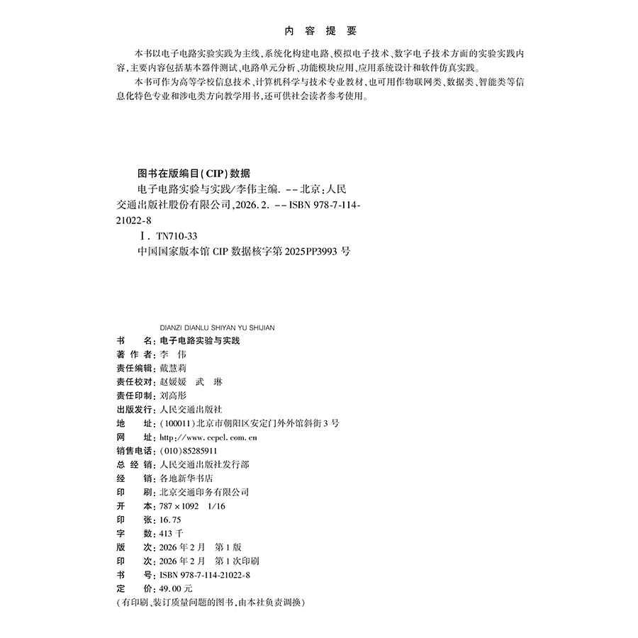 书名:电子电路实验与实践