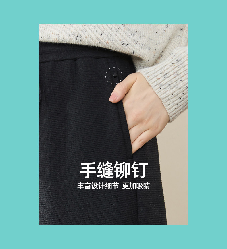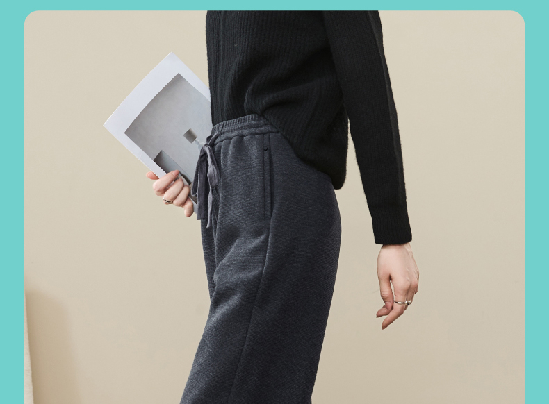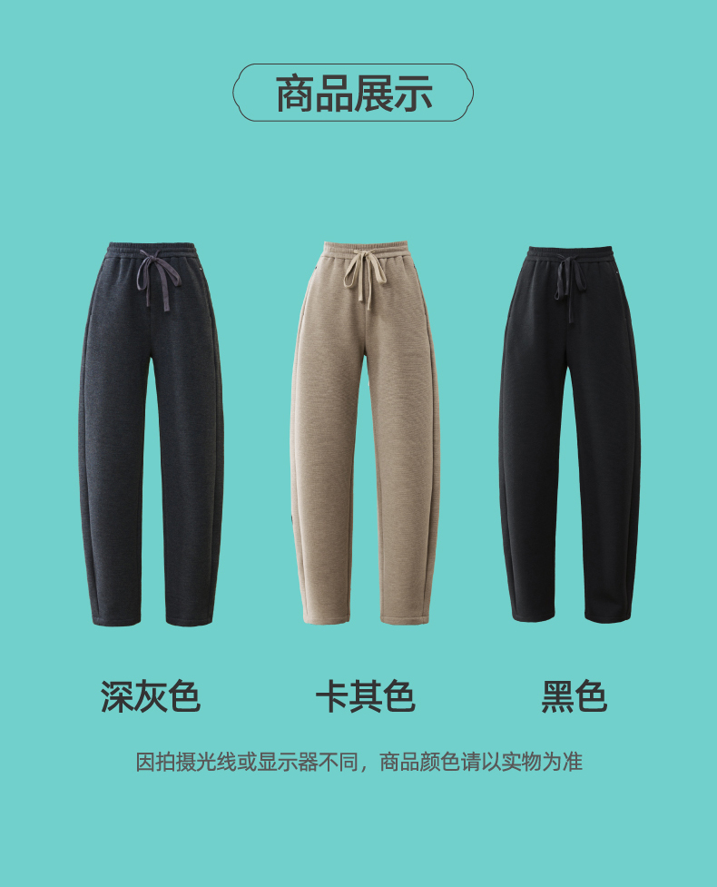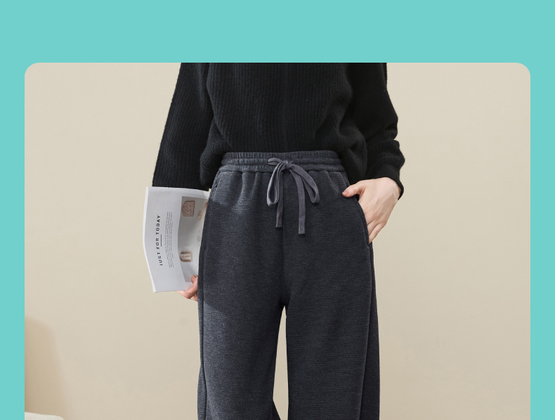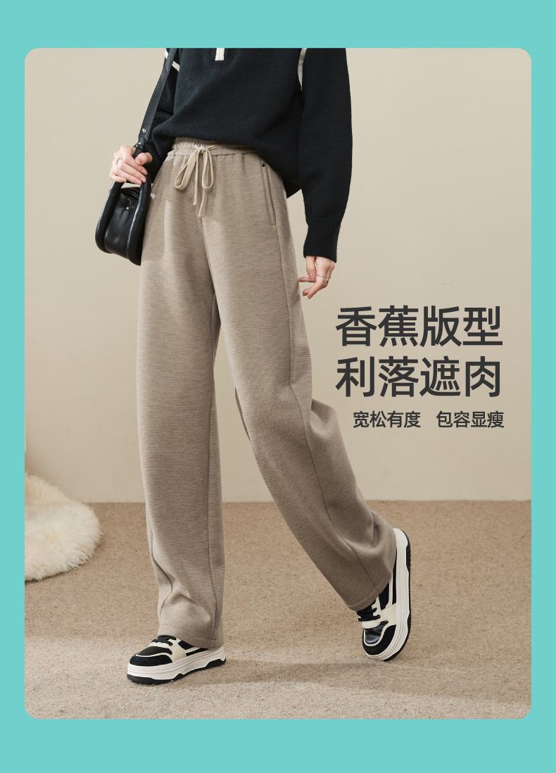 【厚款-香蕉裤】逸阳冬款保暖高腰显瘦方格肌理窄版阔腿香蕉休闲裤1863