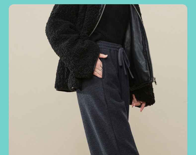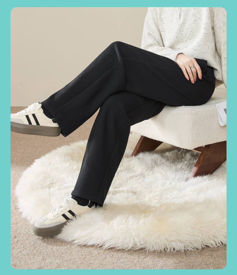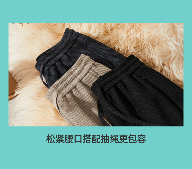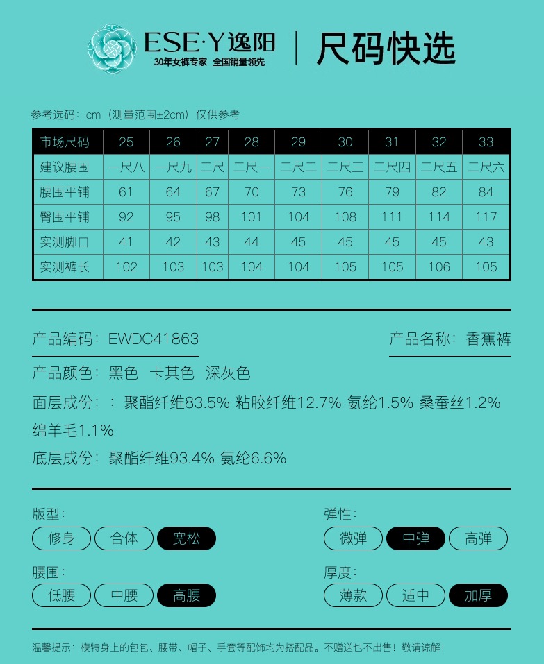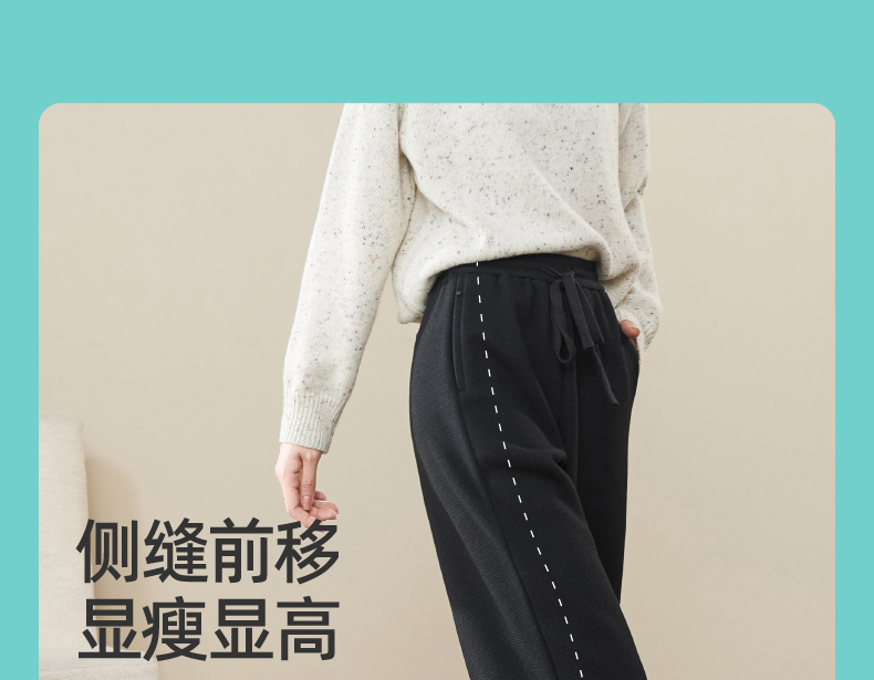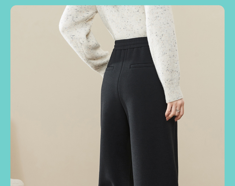 【厚款-香蕉裤】逸阳冬款保暖高腰显瘦方格肌理窄版阔腿香蕉休闲裤1863