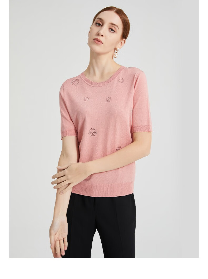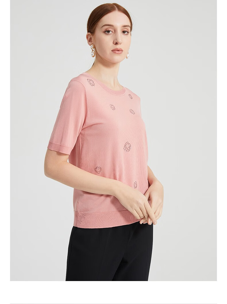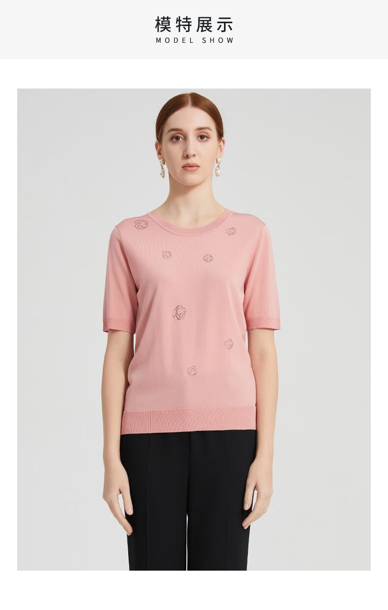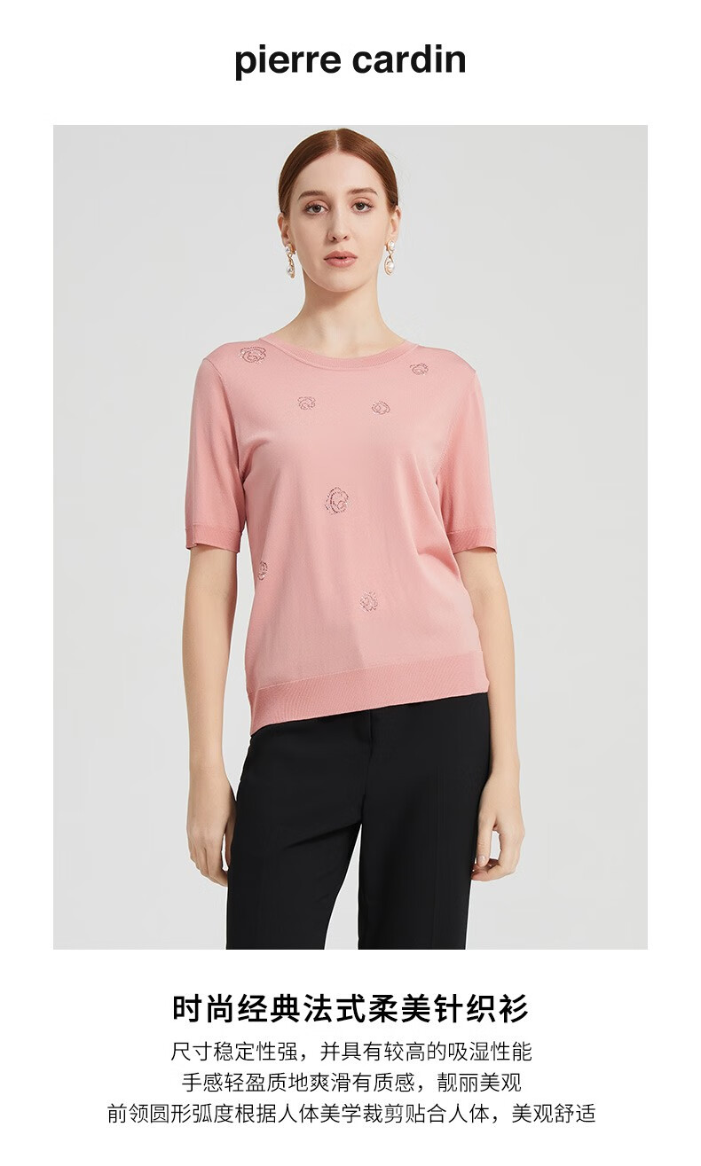 皮尔卡丹女装夏季新款简约柔美淑女针织衫P2299K2213F0