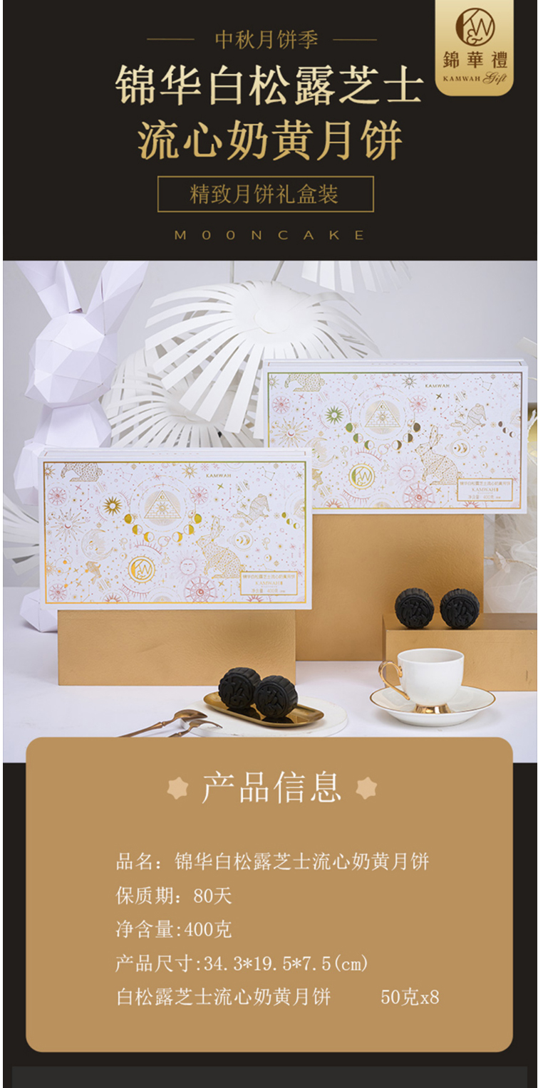 锦华白松露芝士流心奶黄月饼礼盒400g