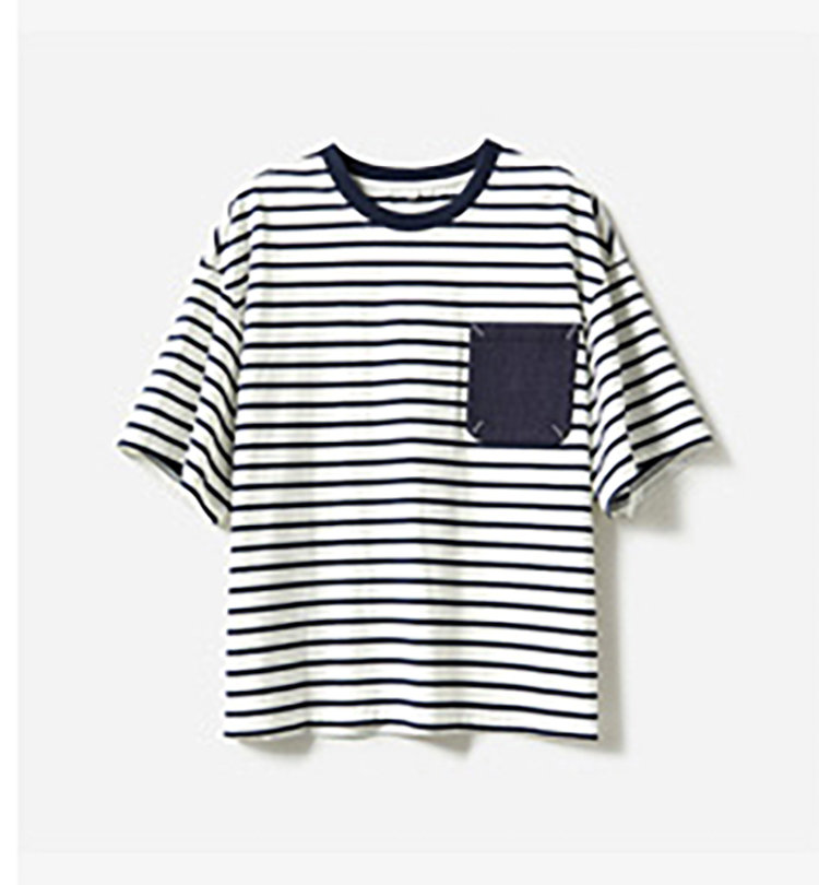 MM6经典贴布刺绣口袋海魂条纹短袖T恤