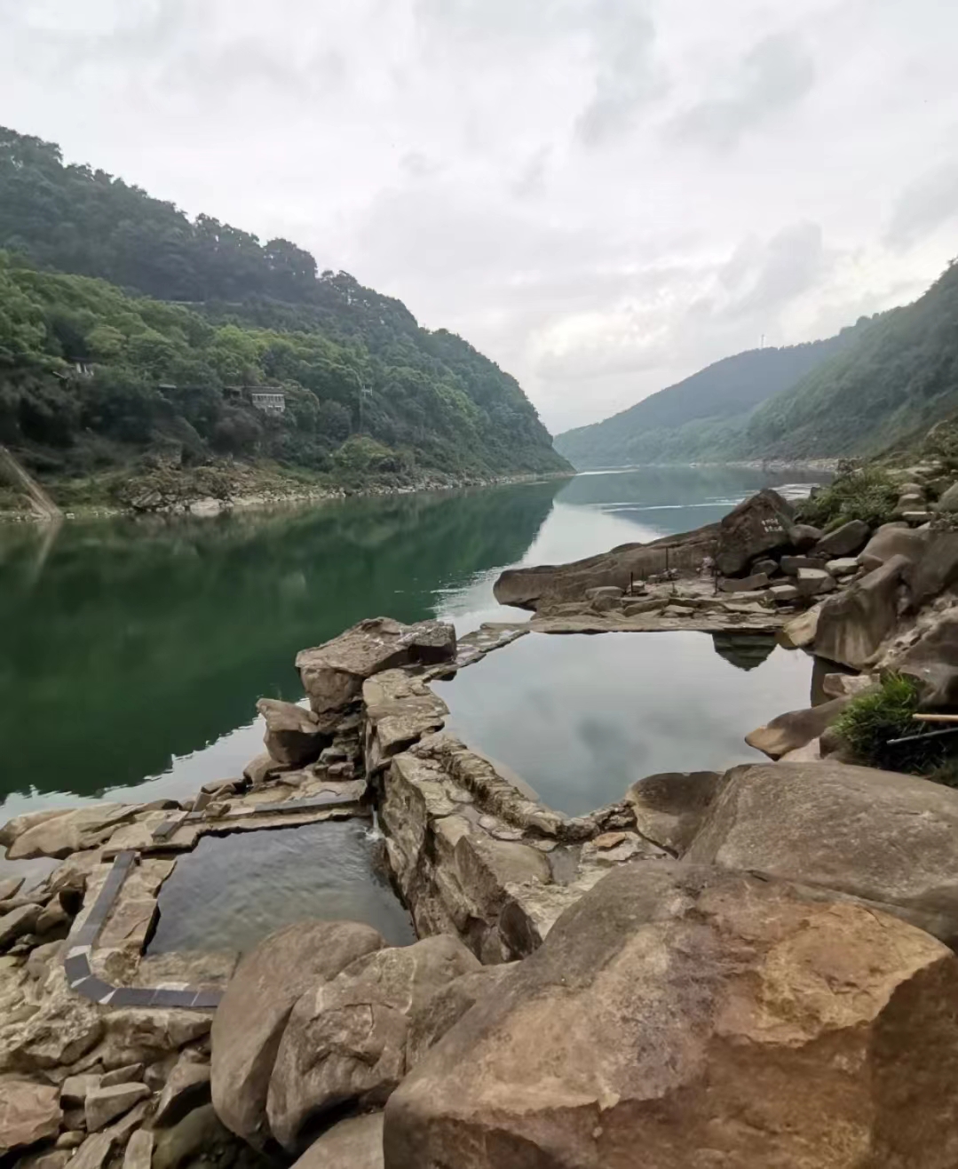 【张飞泉】张飞泉就是我们俗称的“不收费野温泉”,泉水常年保持在26-28℃。张飞泉被围出了两潭池水,上面只是泡澡的,下面可以泡脚。泉水就在嘉陵江边,这里也可以近距离接触江水,对于不会游泳的我来说,看到这种场景还是会有一些忌惮的,所以我并不想去和嘉陵江来个亲密接触。